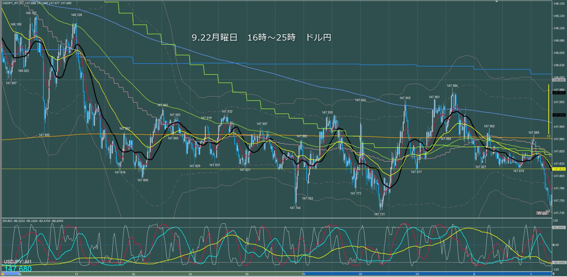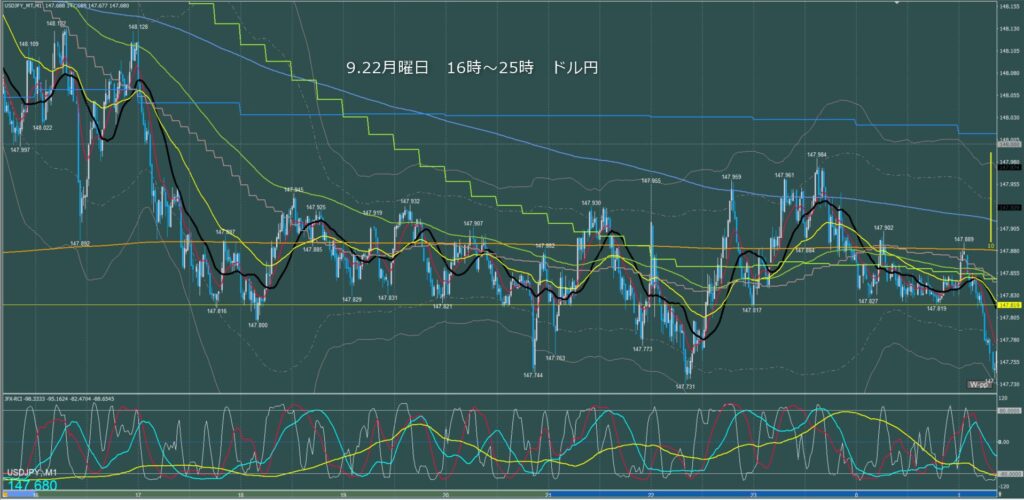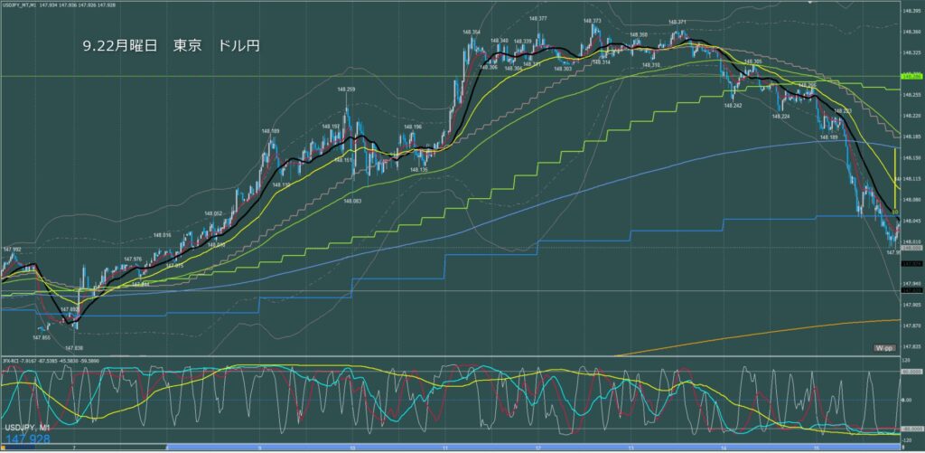 東京時間~ロンドン初動 ドル円1分足チャート 月曜日 9月22日
