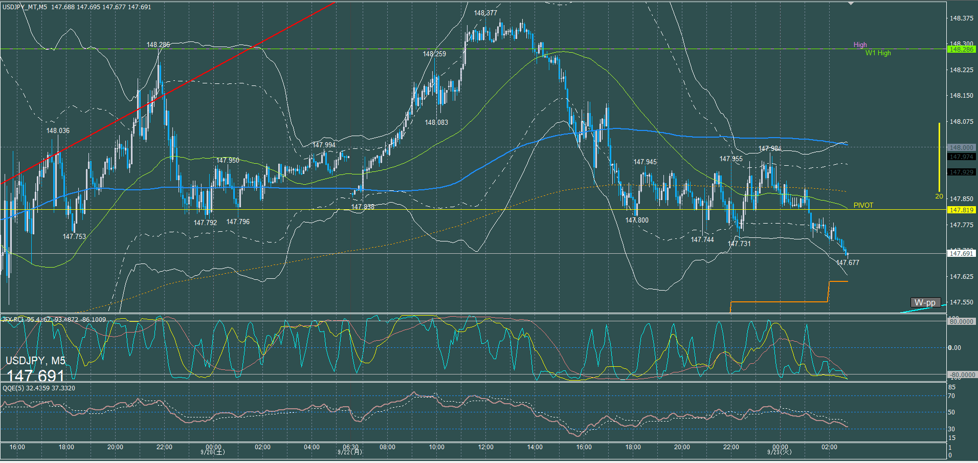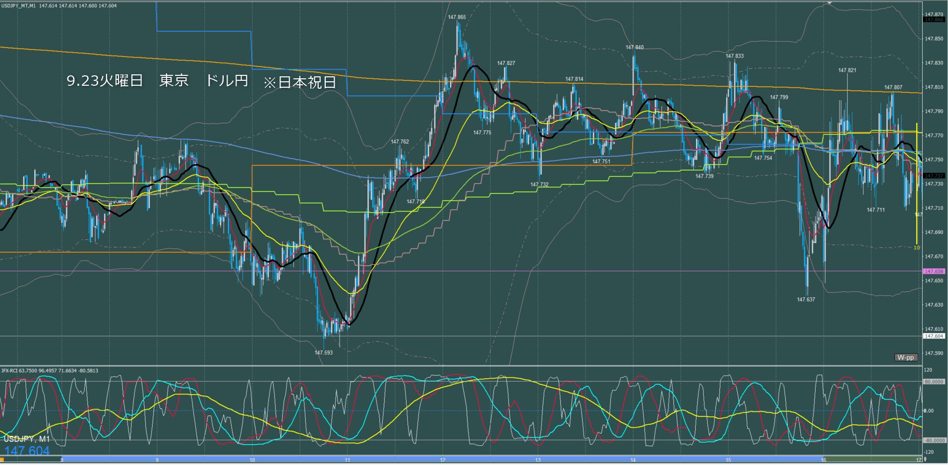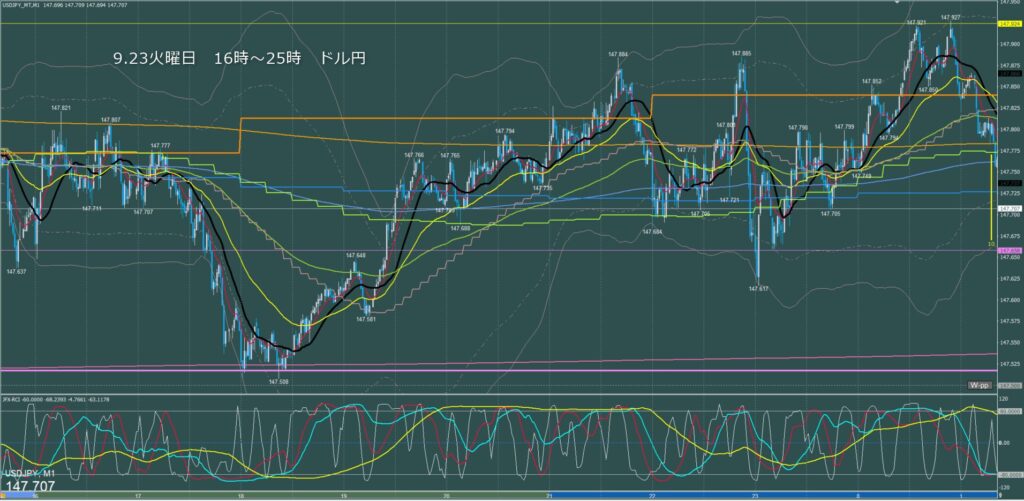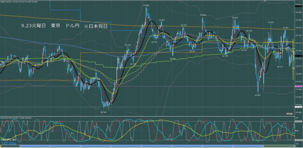 東京時間~ロンドン初動 ドル円1分足チャート 火曜日 9月23日