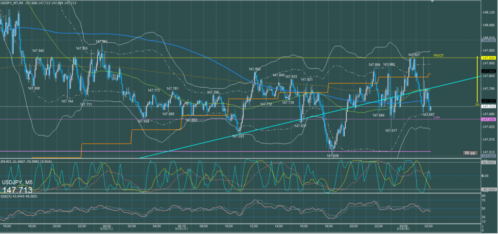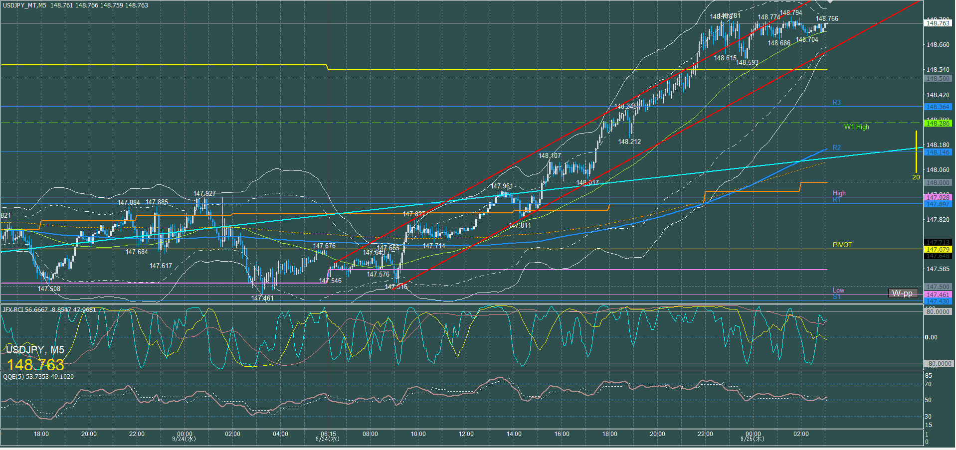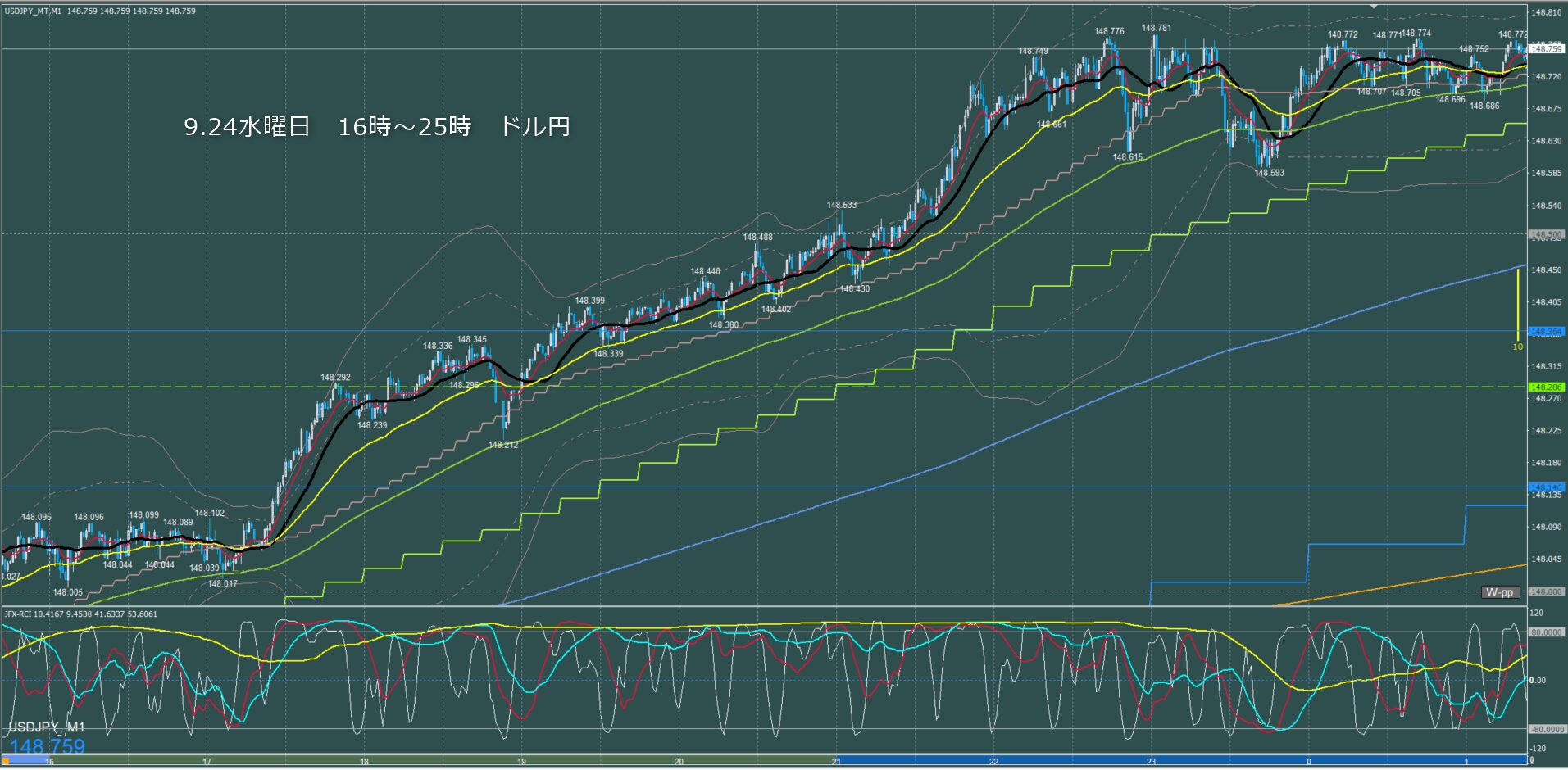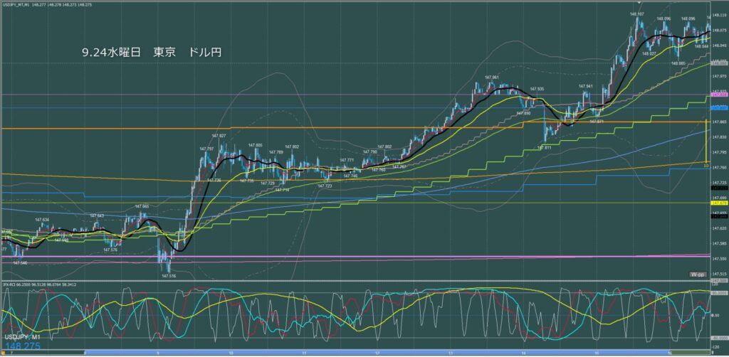 東京時間~ロンドン初動 ドル円1分足チャート 水曜日 9月24日