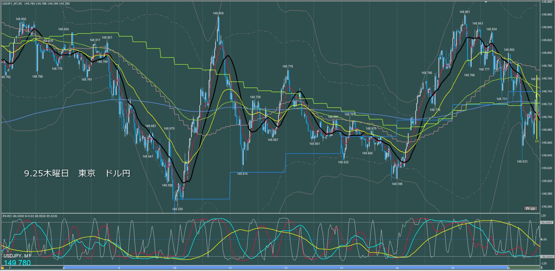 東京時間~ロンドン初動 ドル円1分足チャート 木曜日 9月25日