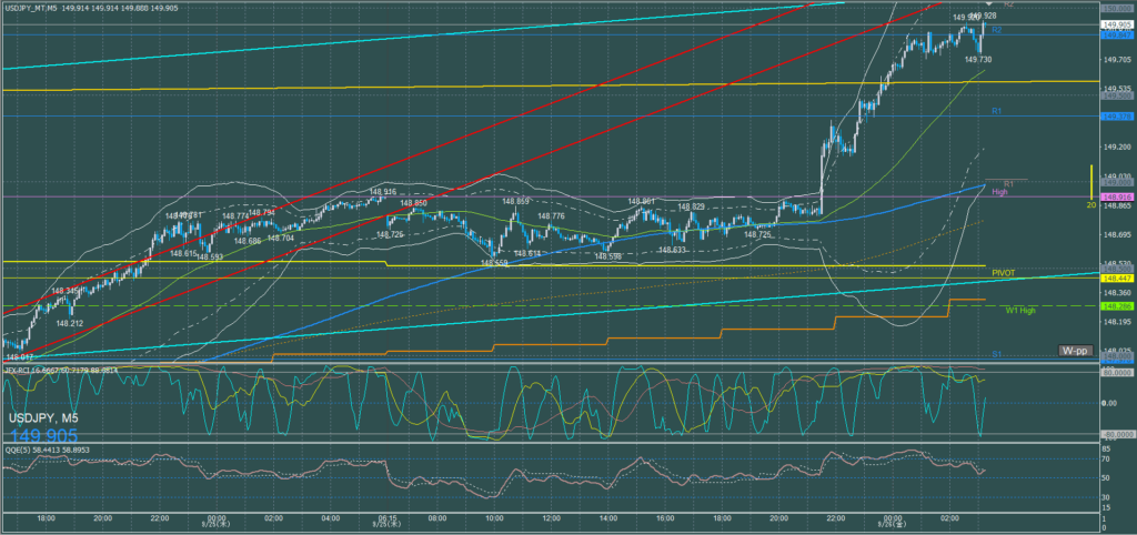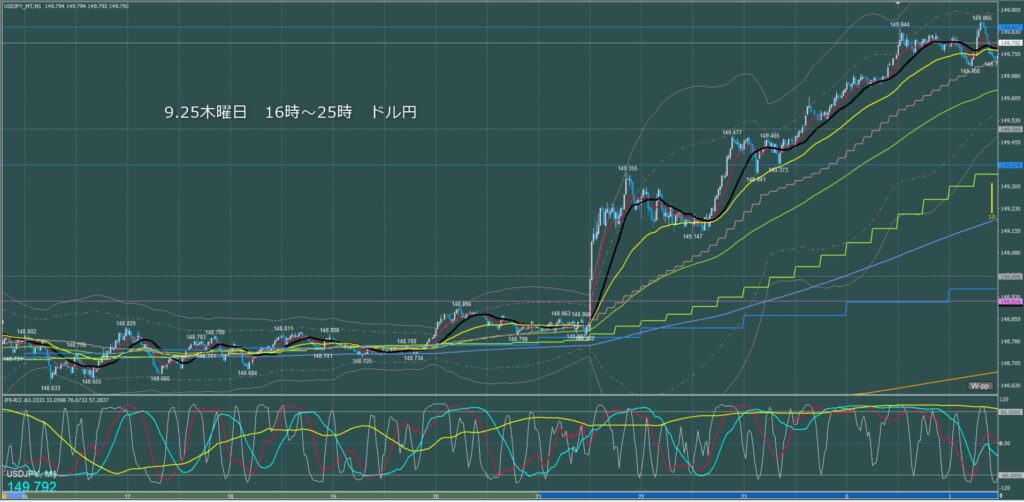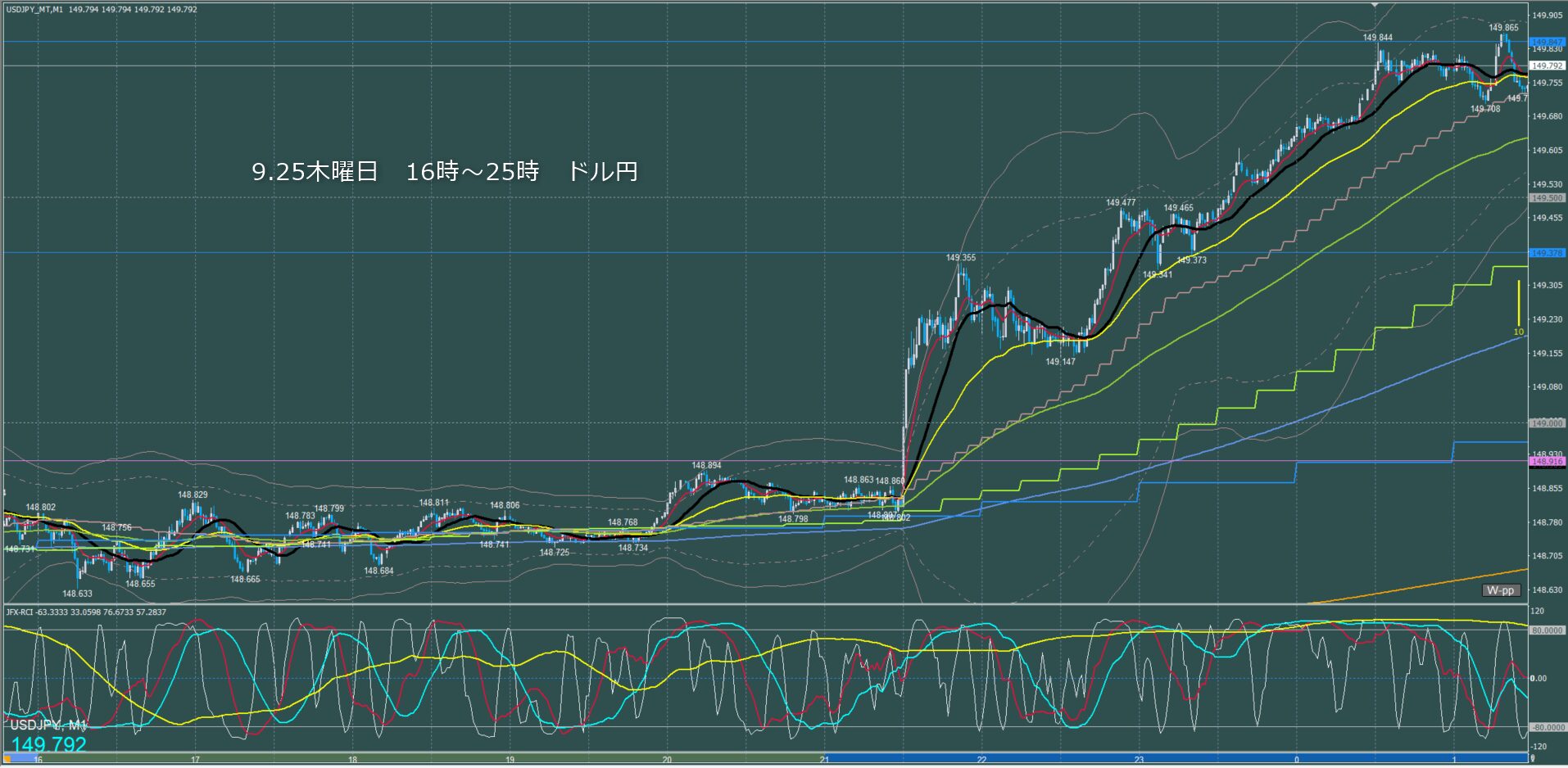 ロンドン~ニューヨーク ドル円1分足チャート 木曜日 9月25日