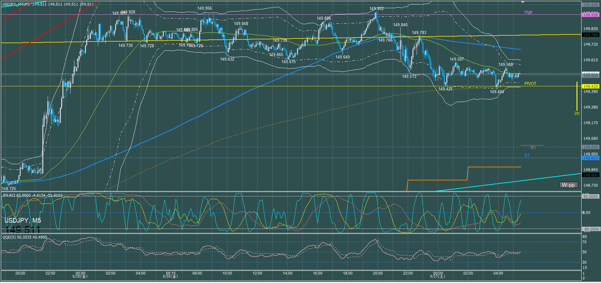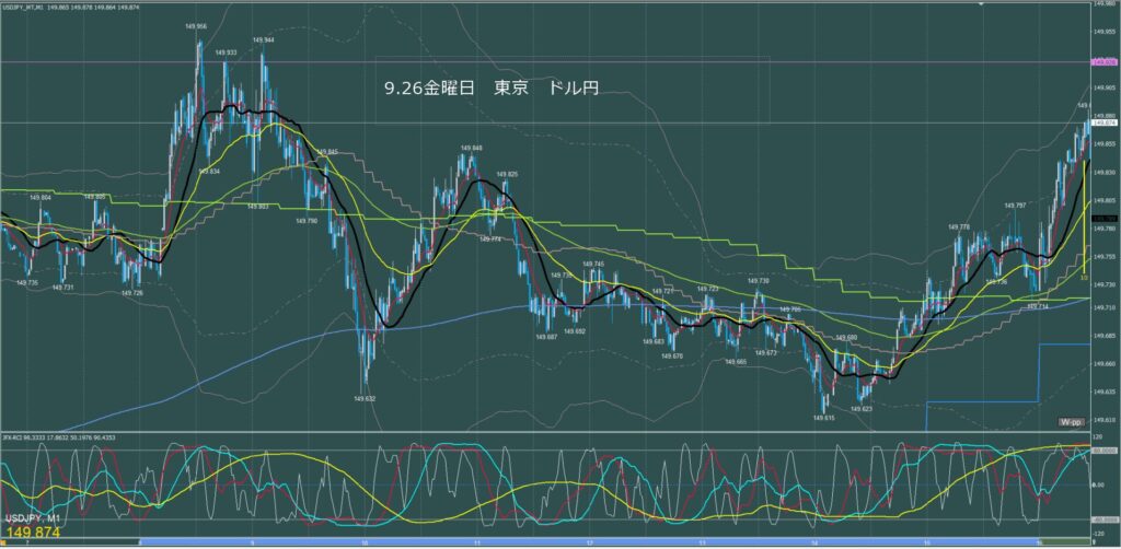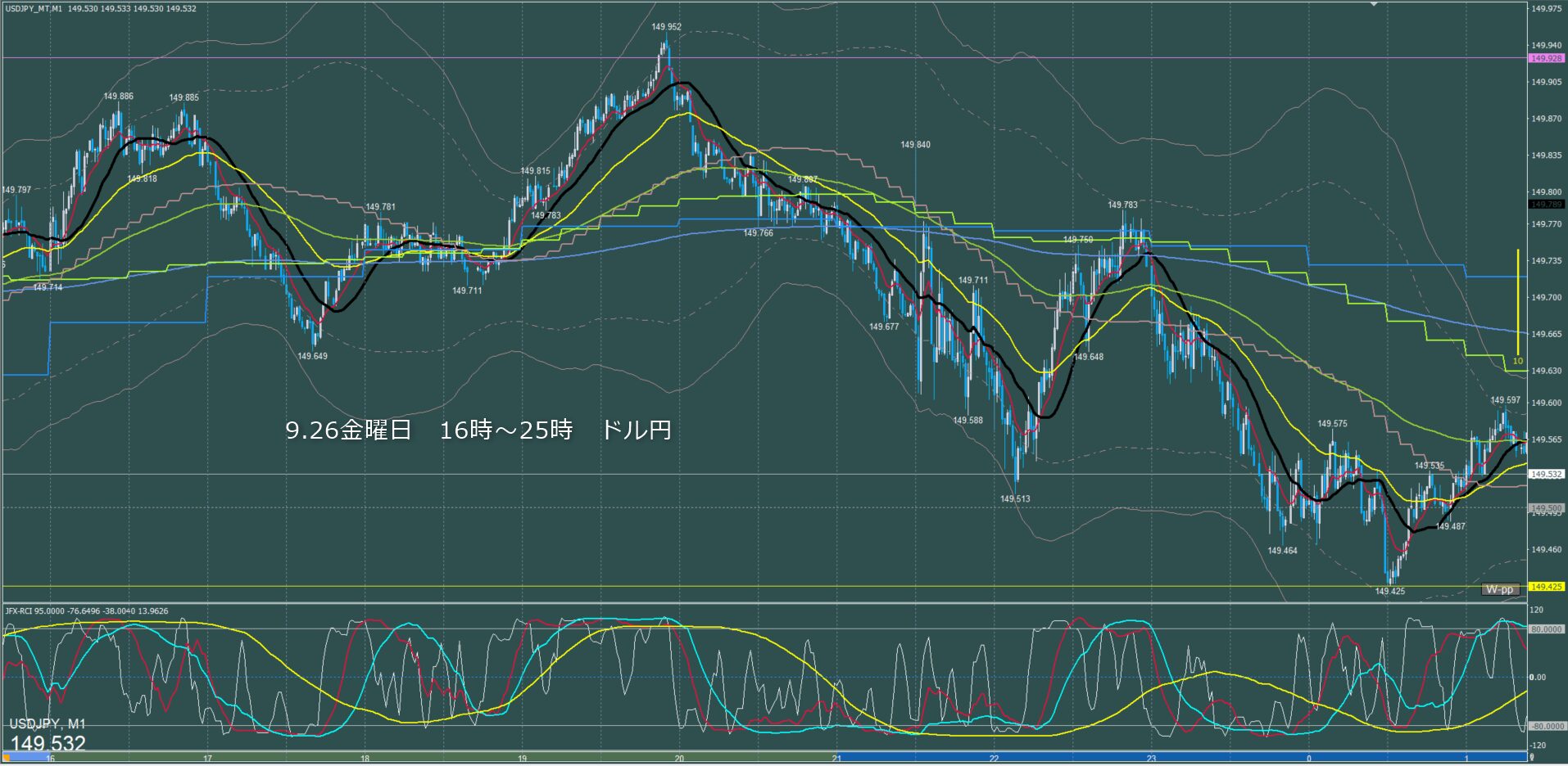 東京時間~ロンドン初動 ドル円1分足チャート 金曜日 9月26日