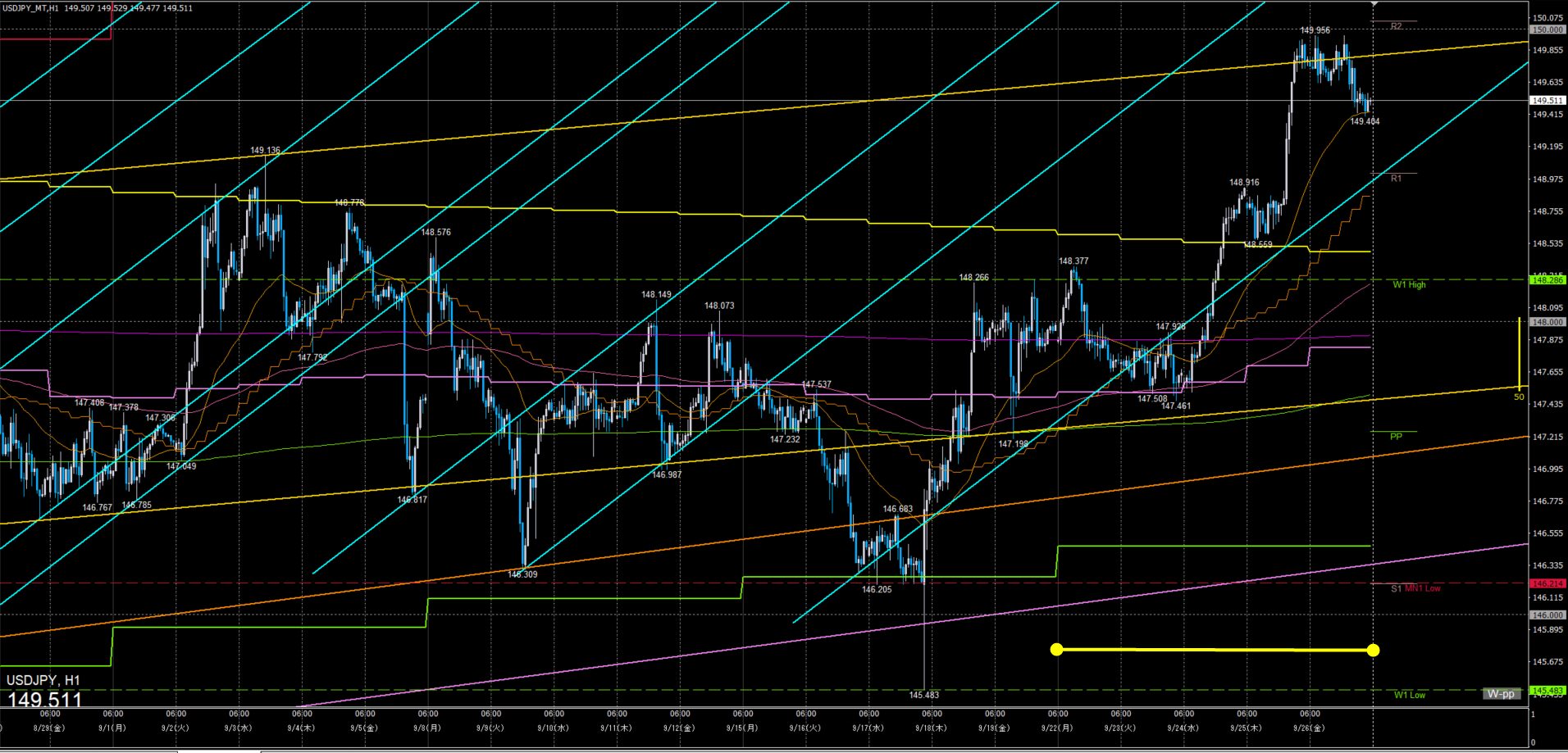 ドル円 一週間の動き 1時間足 2025年9月22日~26日週