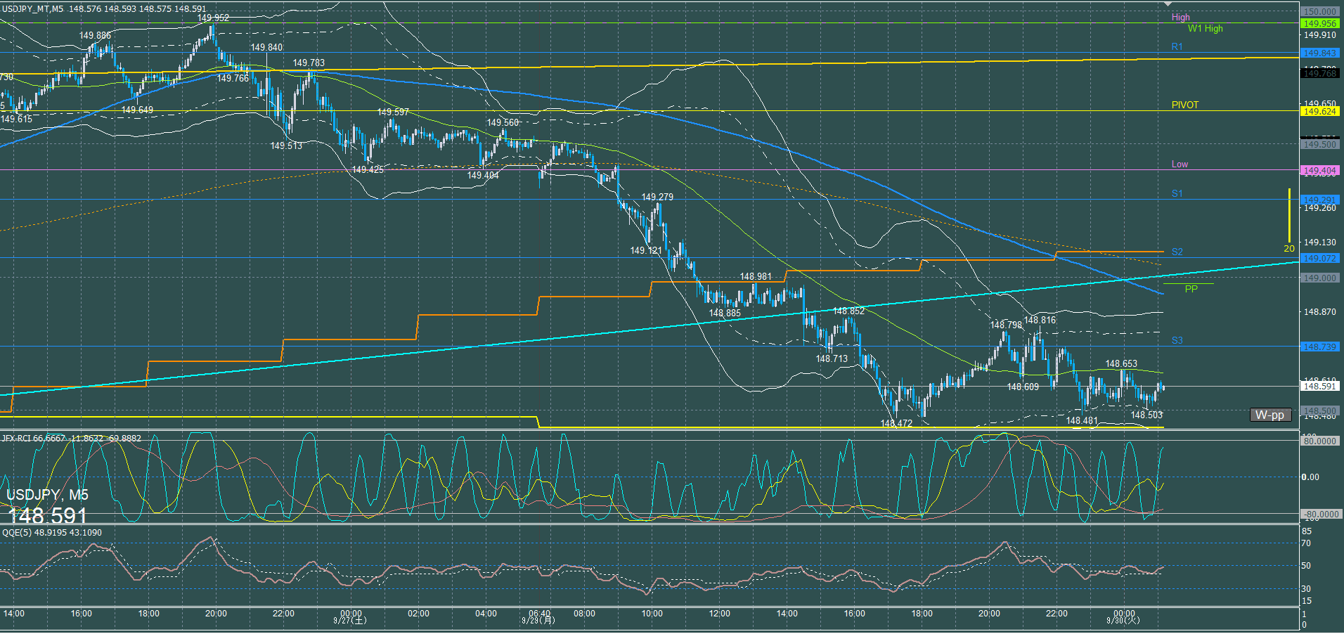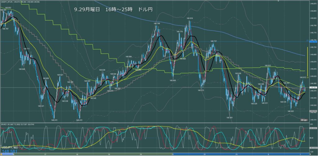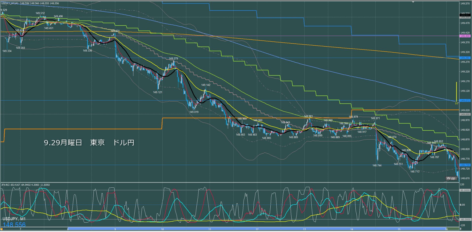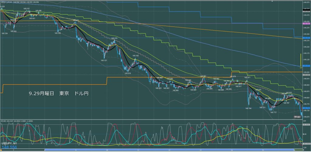 東京時間~ロンドン初動 ドル円1分足チャート 月曜日 9月29日