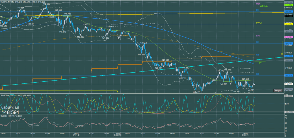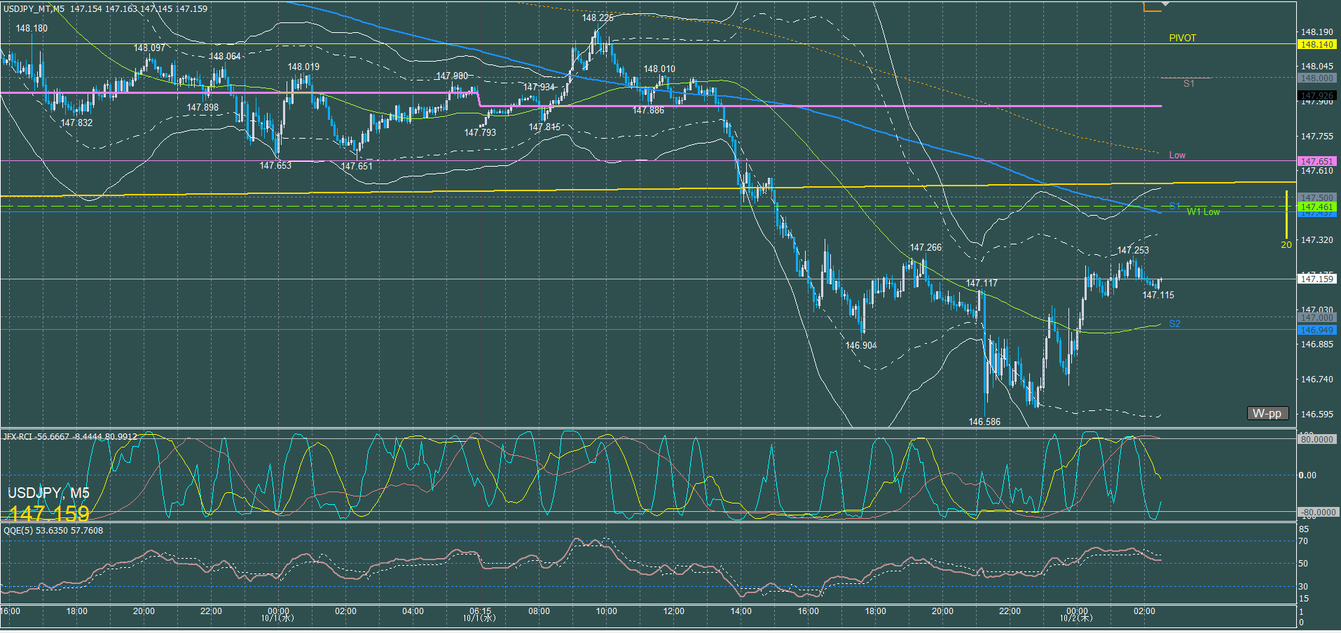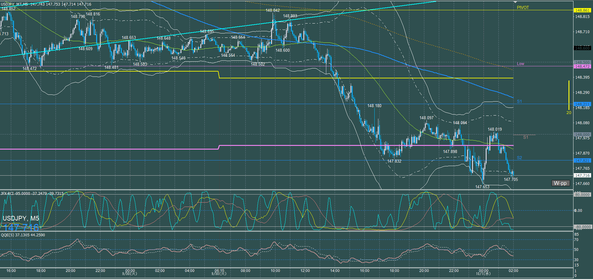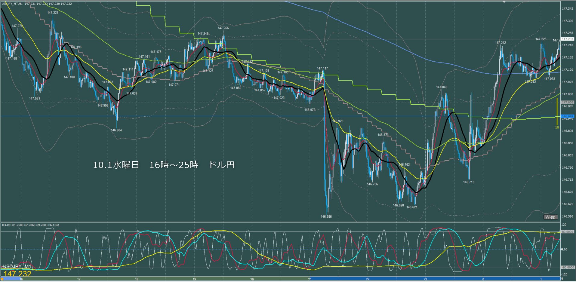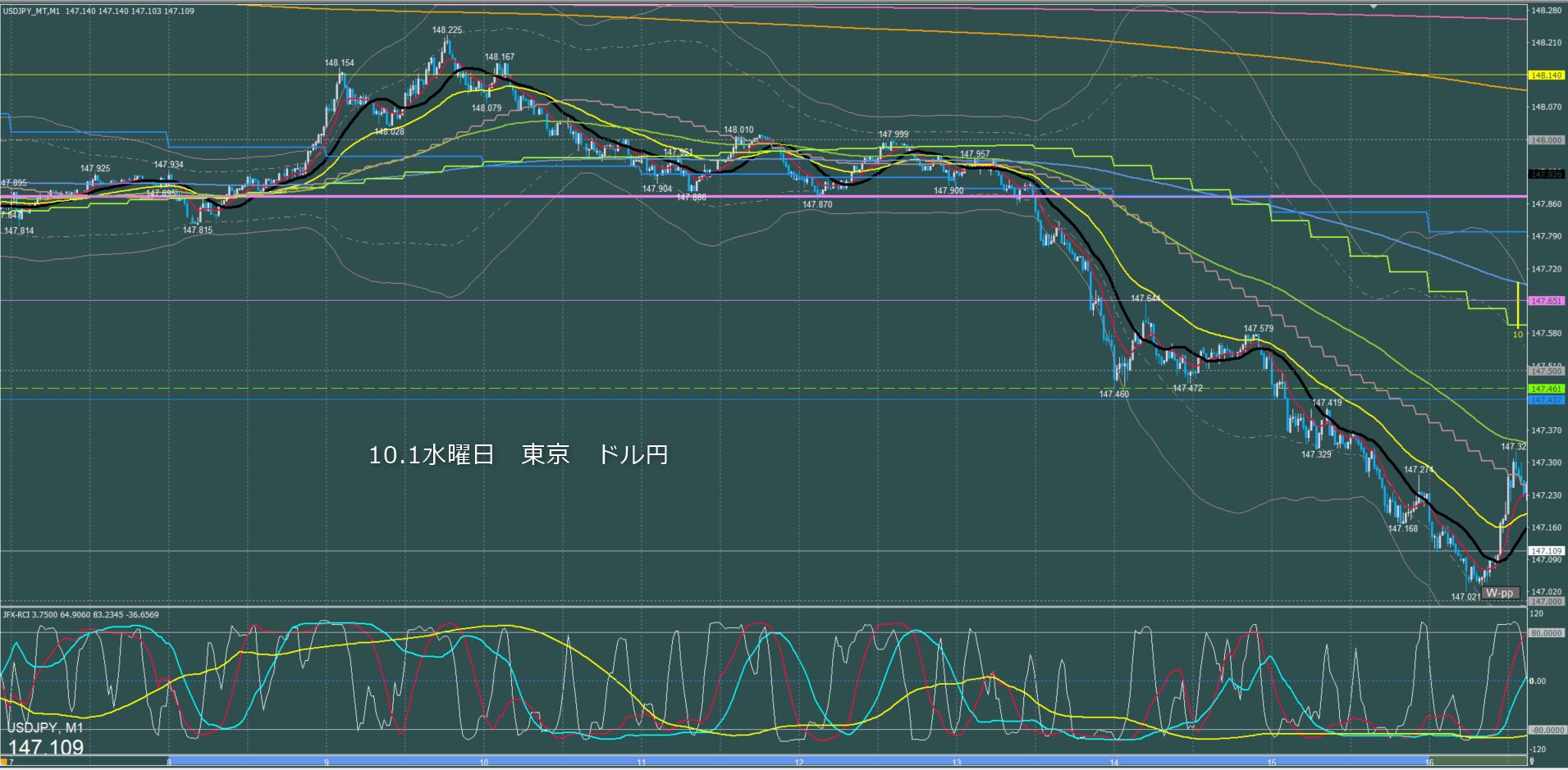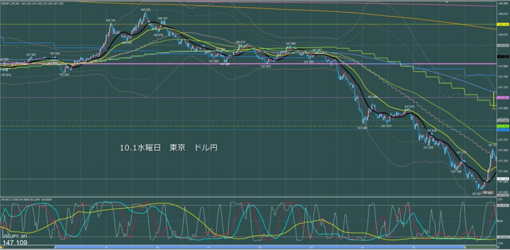 東京時間~ロンドン初動 ドル円1分足チャート 水曜日 10月1日