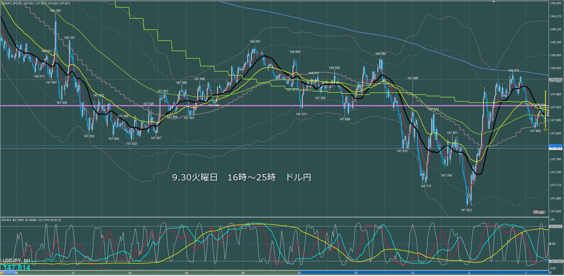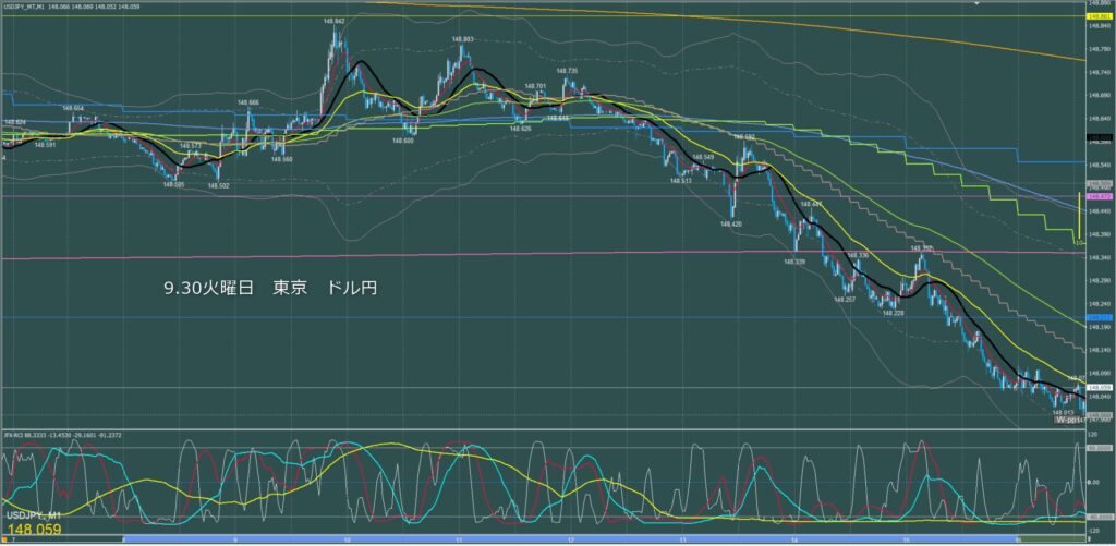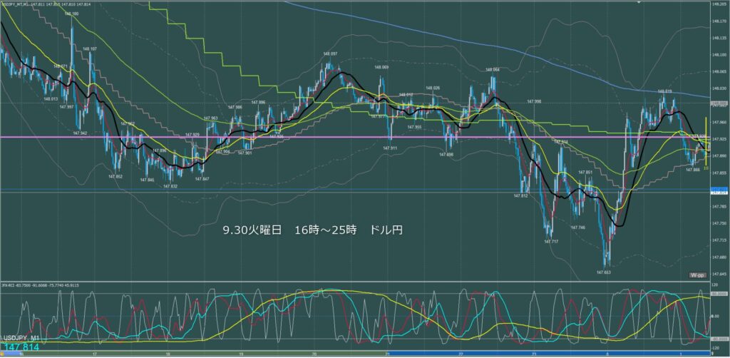 東京時間~ロンドン初動 ドル円1分足チャート 火曜日 9月30日