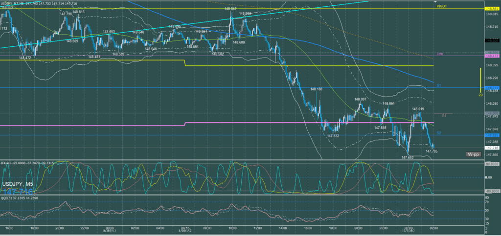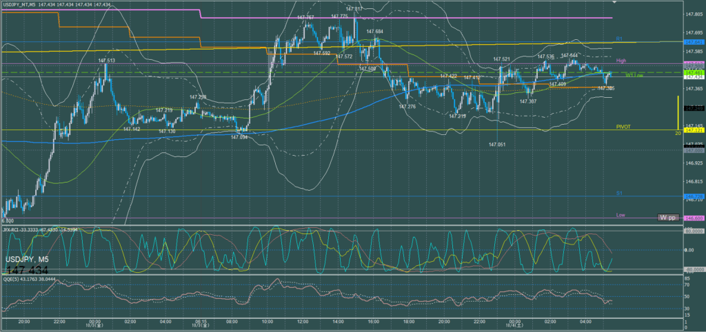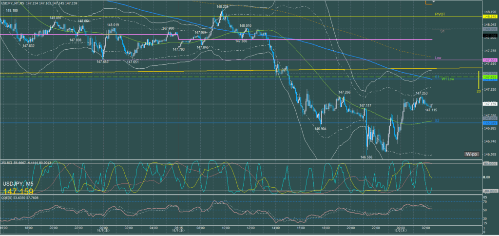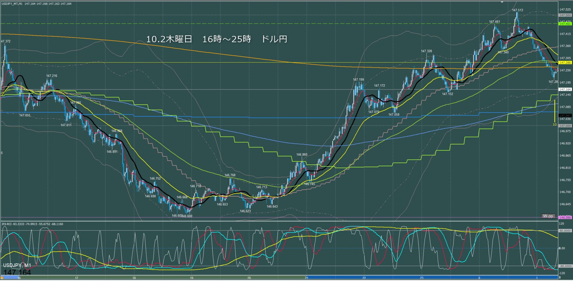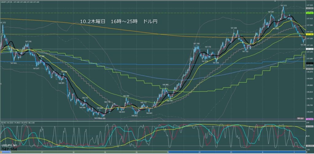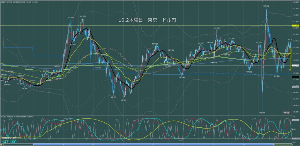 東京時間~ロンドン初動 ドル円1分足チャート 木曜日 10月2日