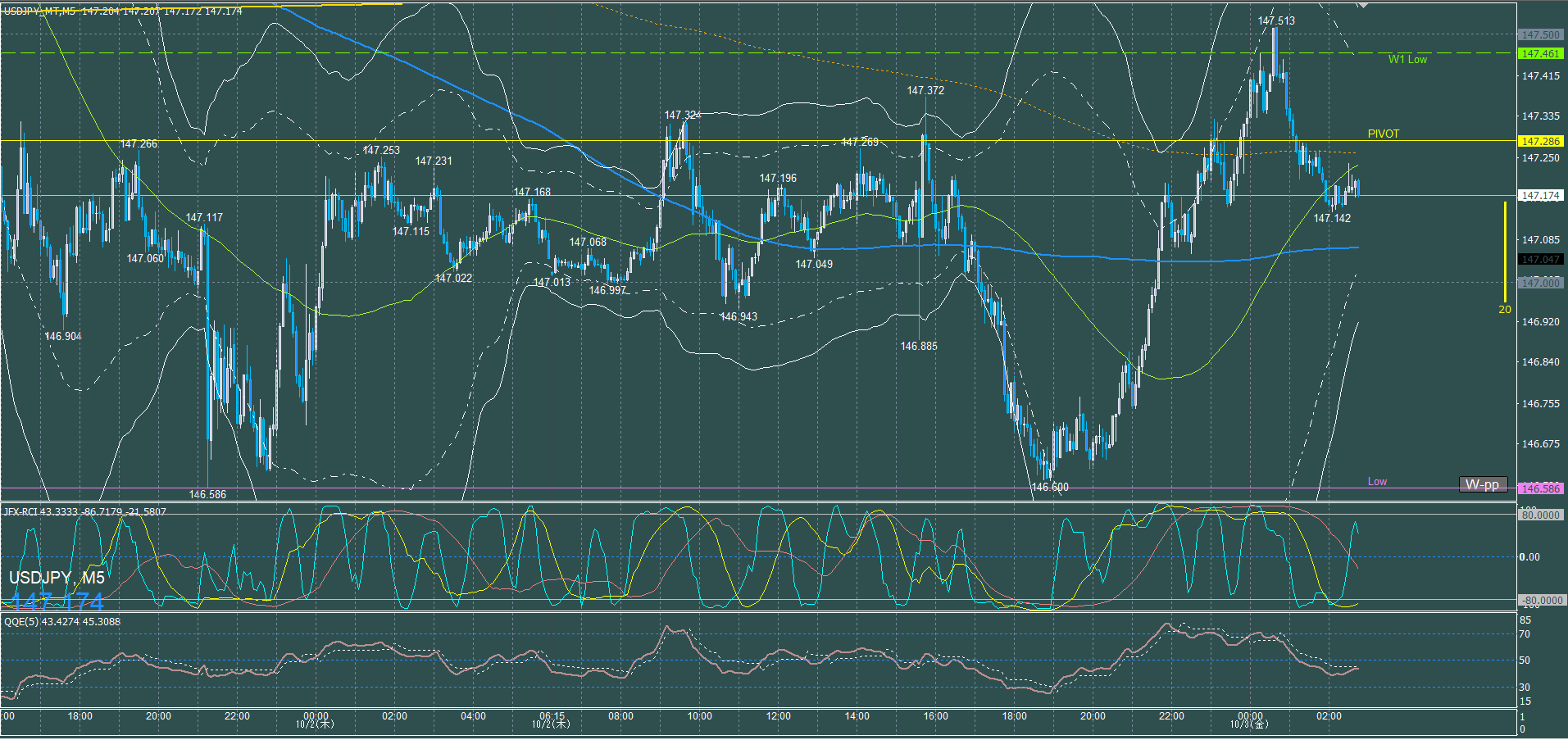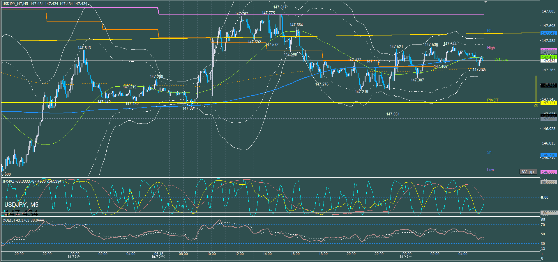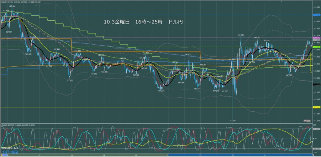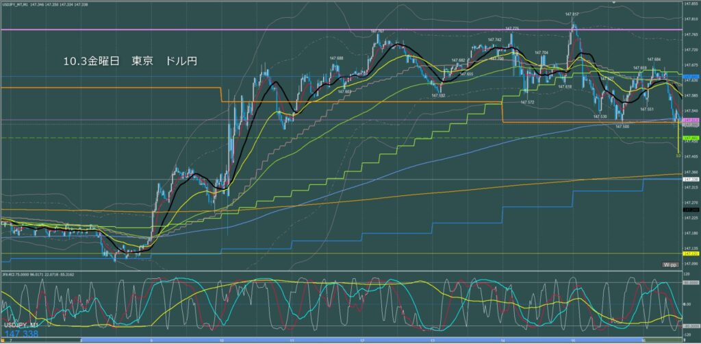 東京時間~ロンドン初動 ドル円1分足チャート 金曜日 10月3日