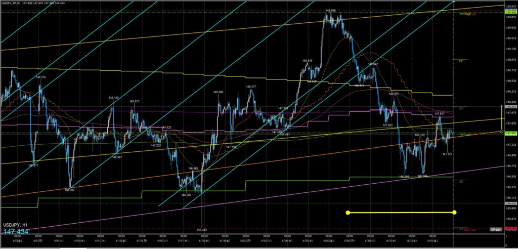 ドル円 一週間の動き 1時間足 2025年9月29日~10月3日週