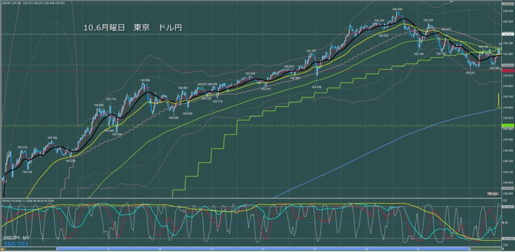 東京時間~ロンドン初動 ドル円1分足チャート 月曜日 10月6日