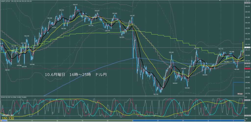 ロンドン~ニューヨーク ドル円1分足チャート 月曜日 10月6日