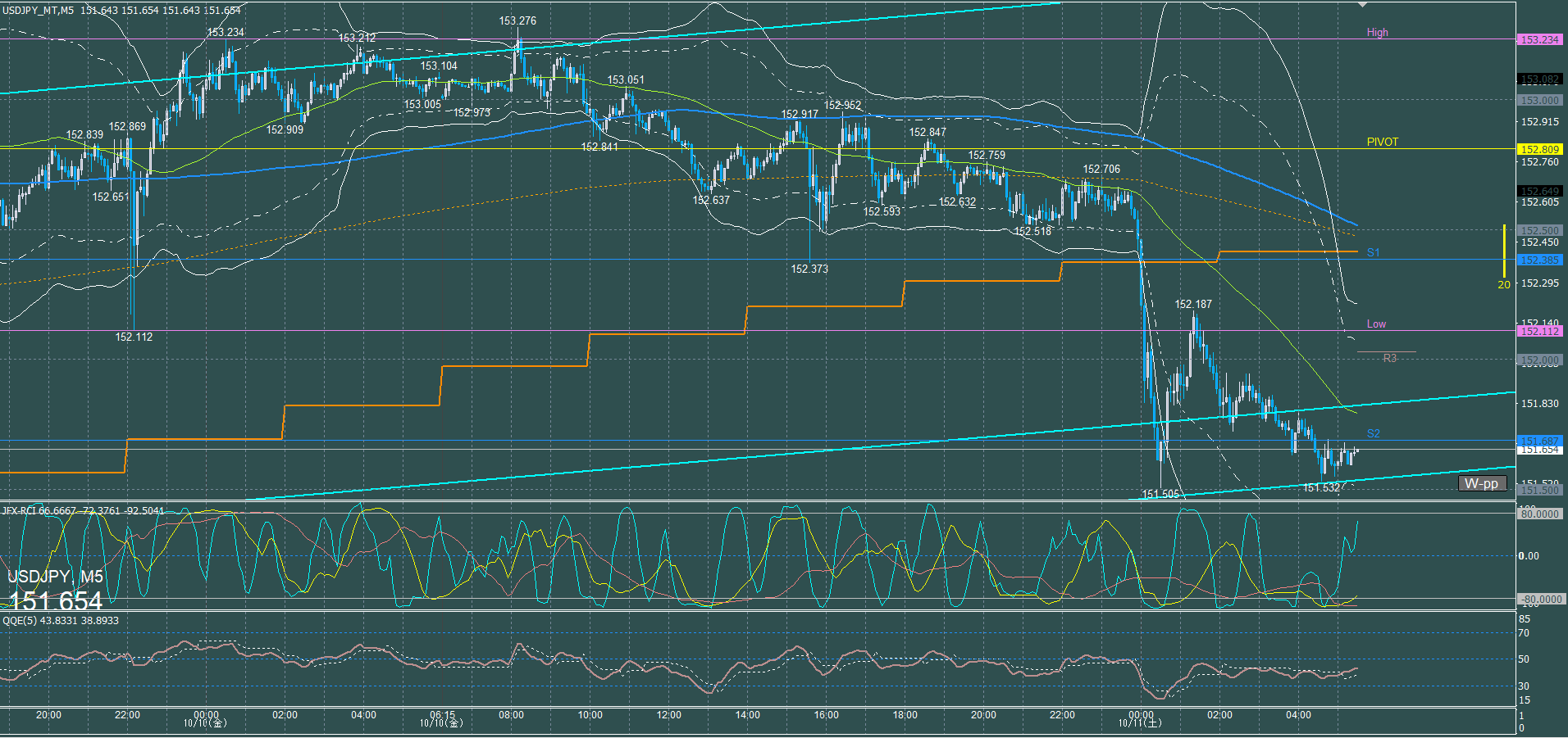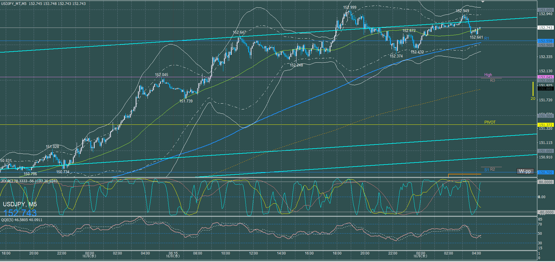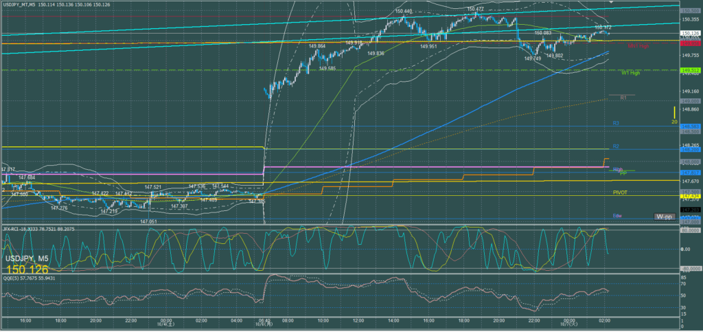 ドル円5分足チャート 水曜日 10月8日