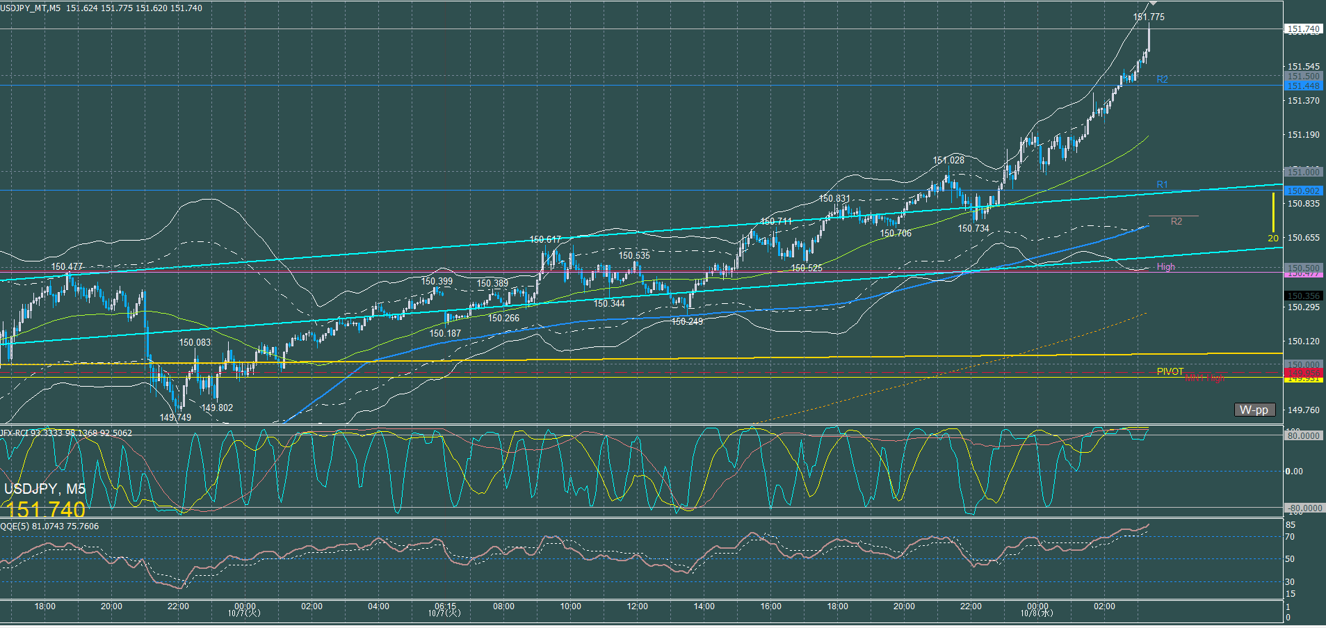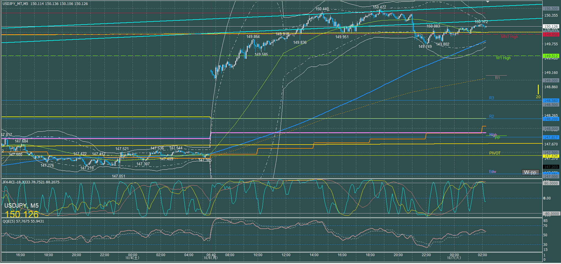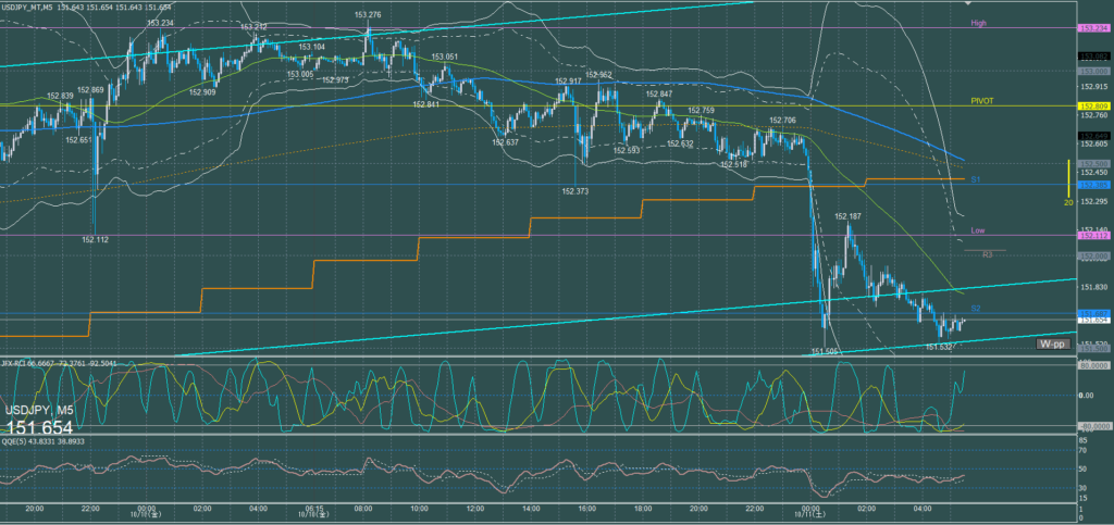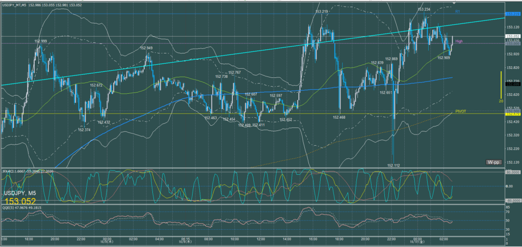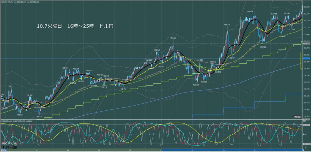 ドル円5分足チャート 火曜日 10月7日