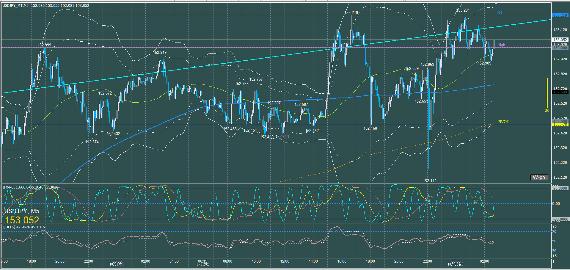 ドル円5分足チャート 木曜日 10月9日