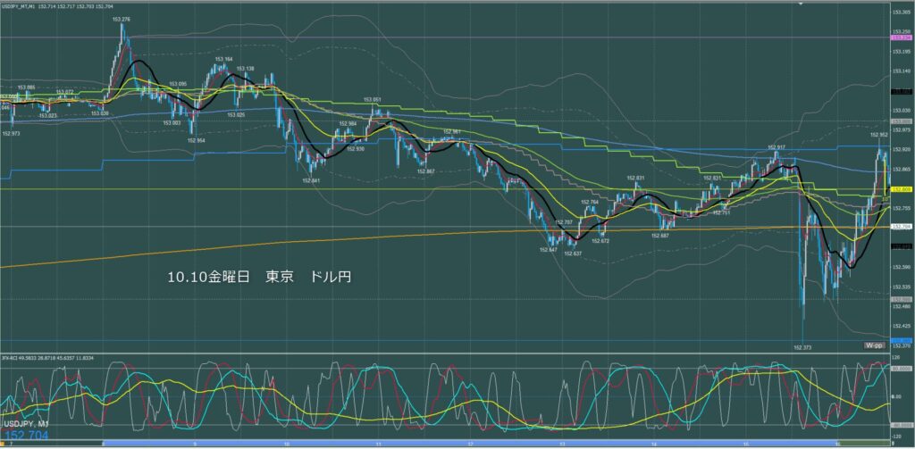 東京時間~ロンドン初動 ドル円1分足チャート 金曜日 10月10日