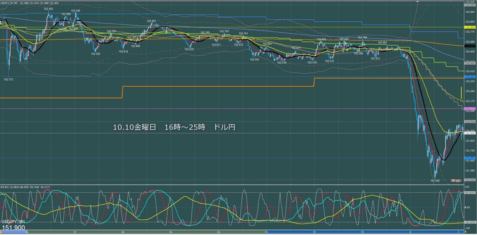 ドル円5分足チャート 金曜日 10月10日