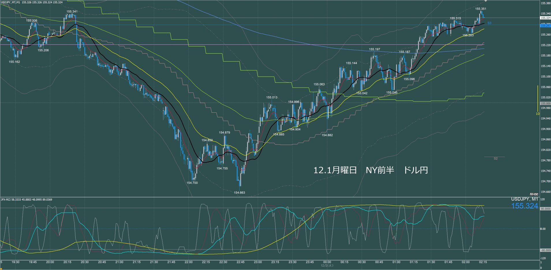 ニューヨーク前半 ドル円1分足チャート 月曜日 12月1日