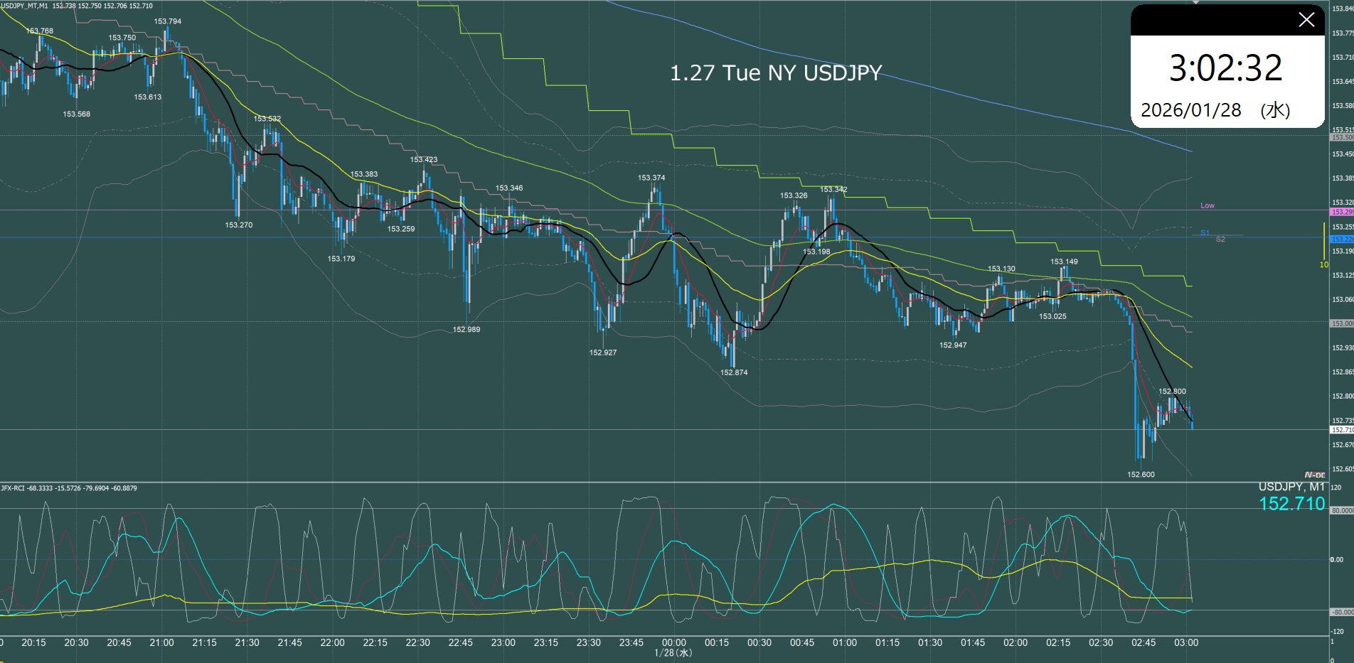 検証先週金曜日の2回の急落は日米協調のレートチェックというのが大勢の意見か。もしそうだとすると実弾を入れてくるのはこれからということになる。ロングする時は確実に利確、戻りはショート目線で行きたい。
