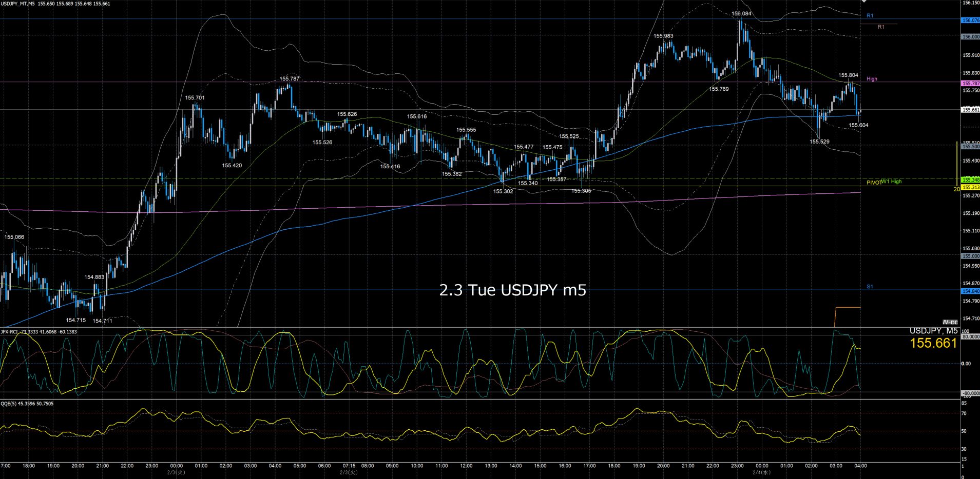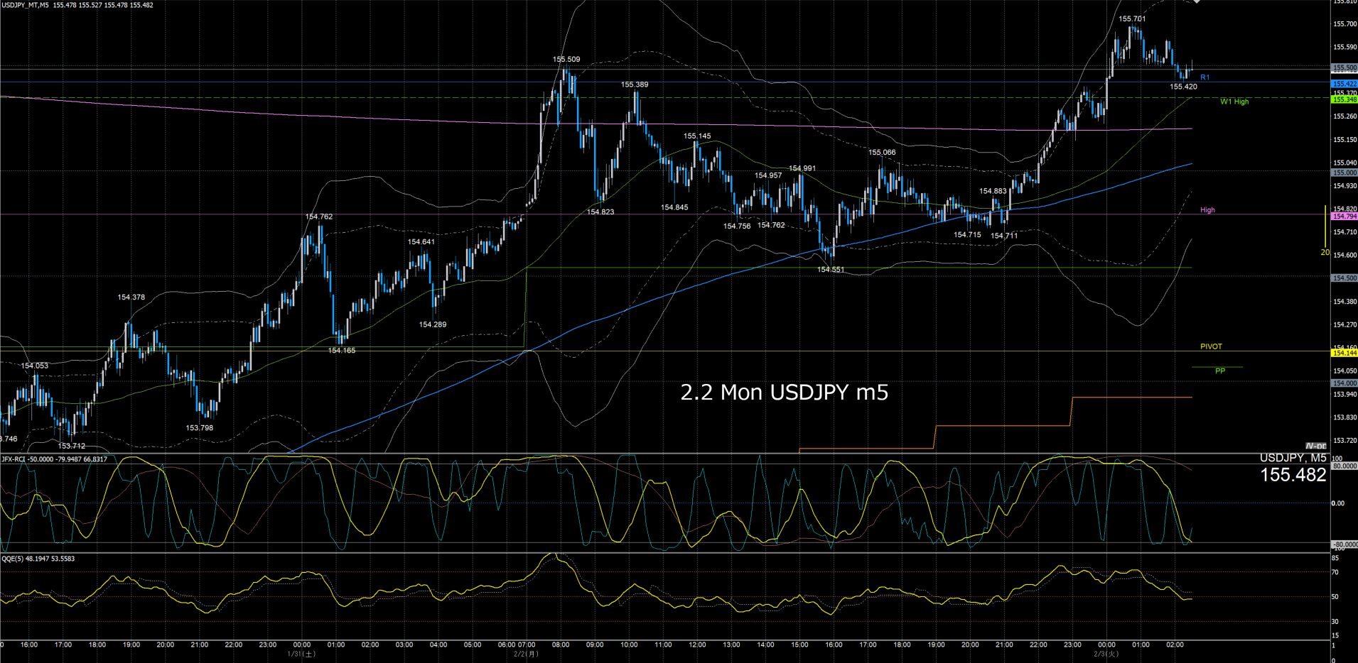 ドル円5分足チャート 月曜日 2月2日