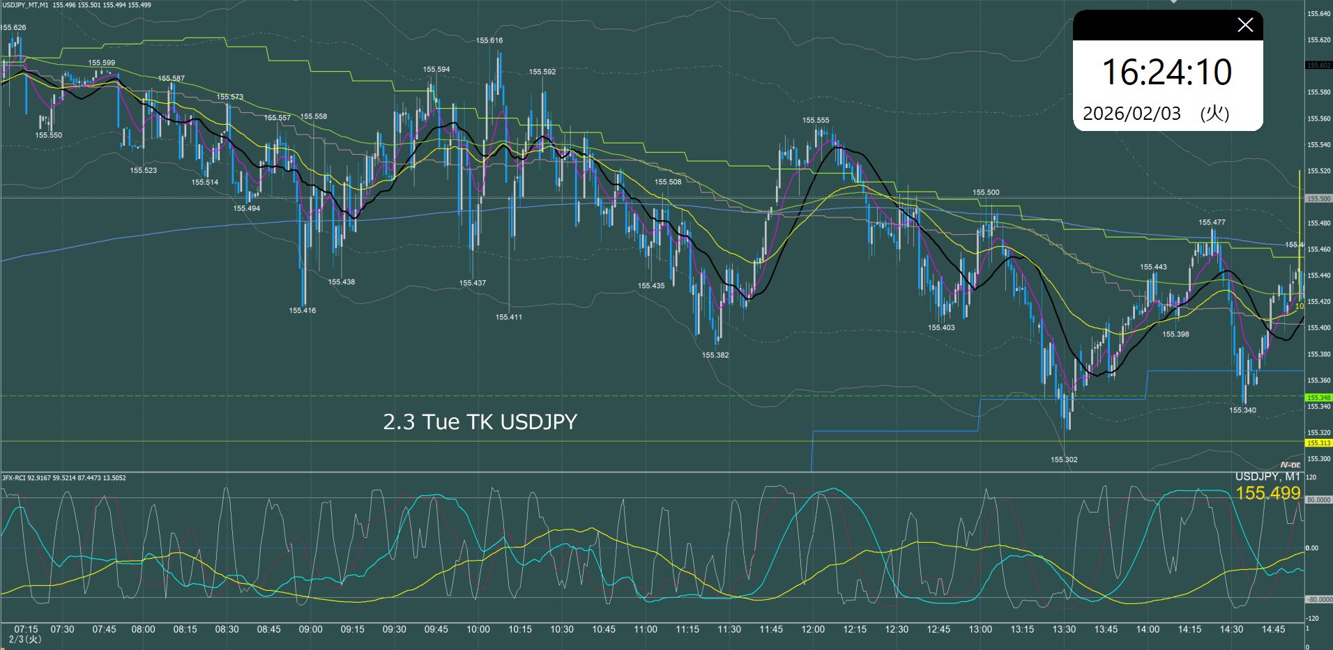 東京時間 ドル円1分足チャート 火曜日 2月3日