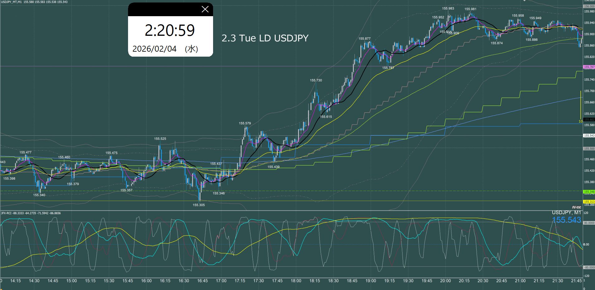 ロンドン時間 ドル円1分足チャート 火曜日 2月3日