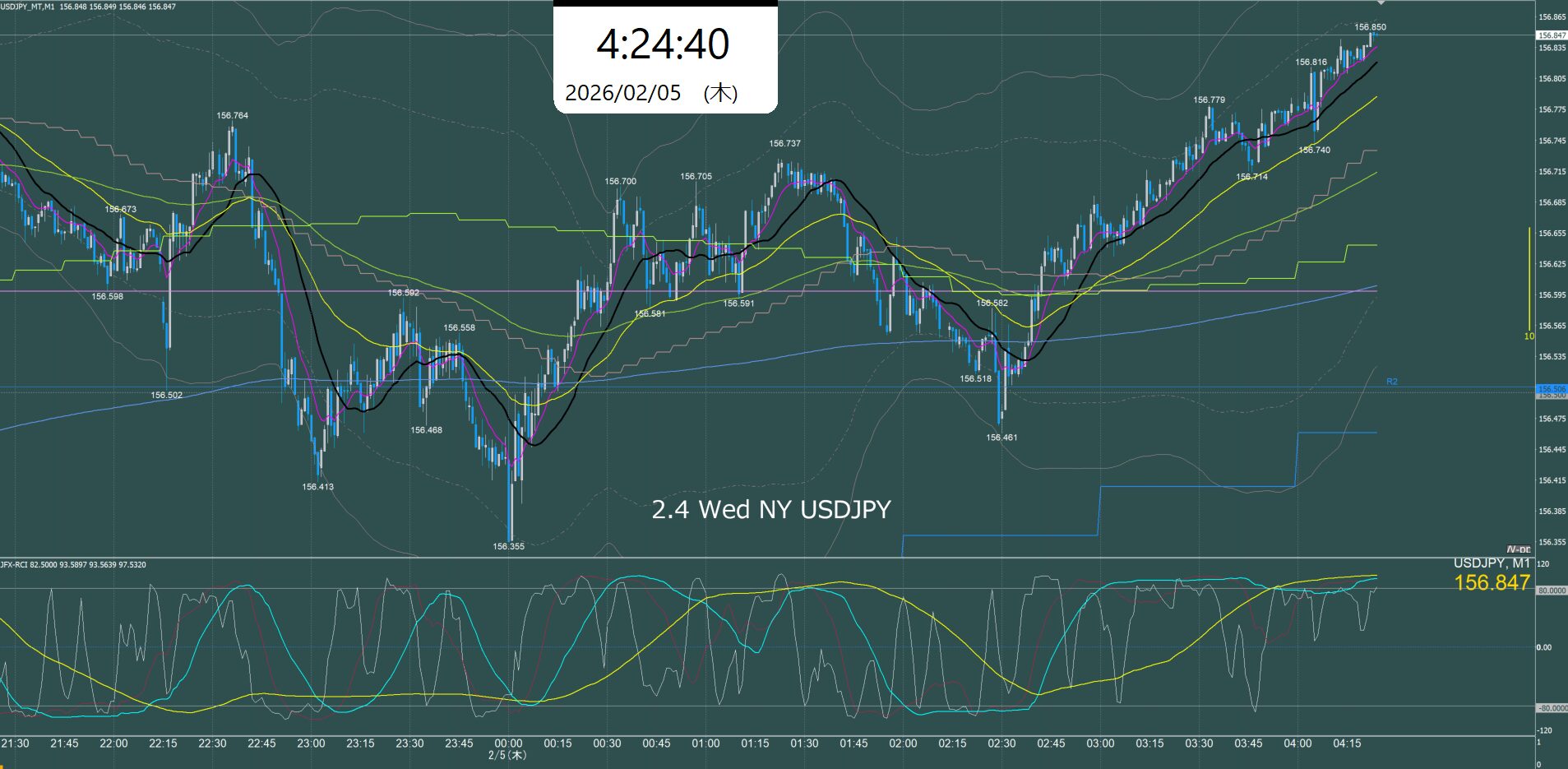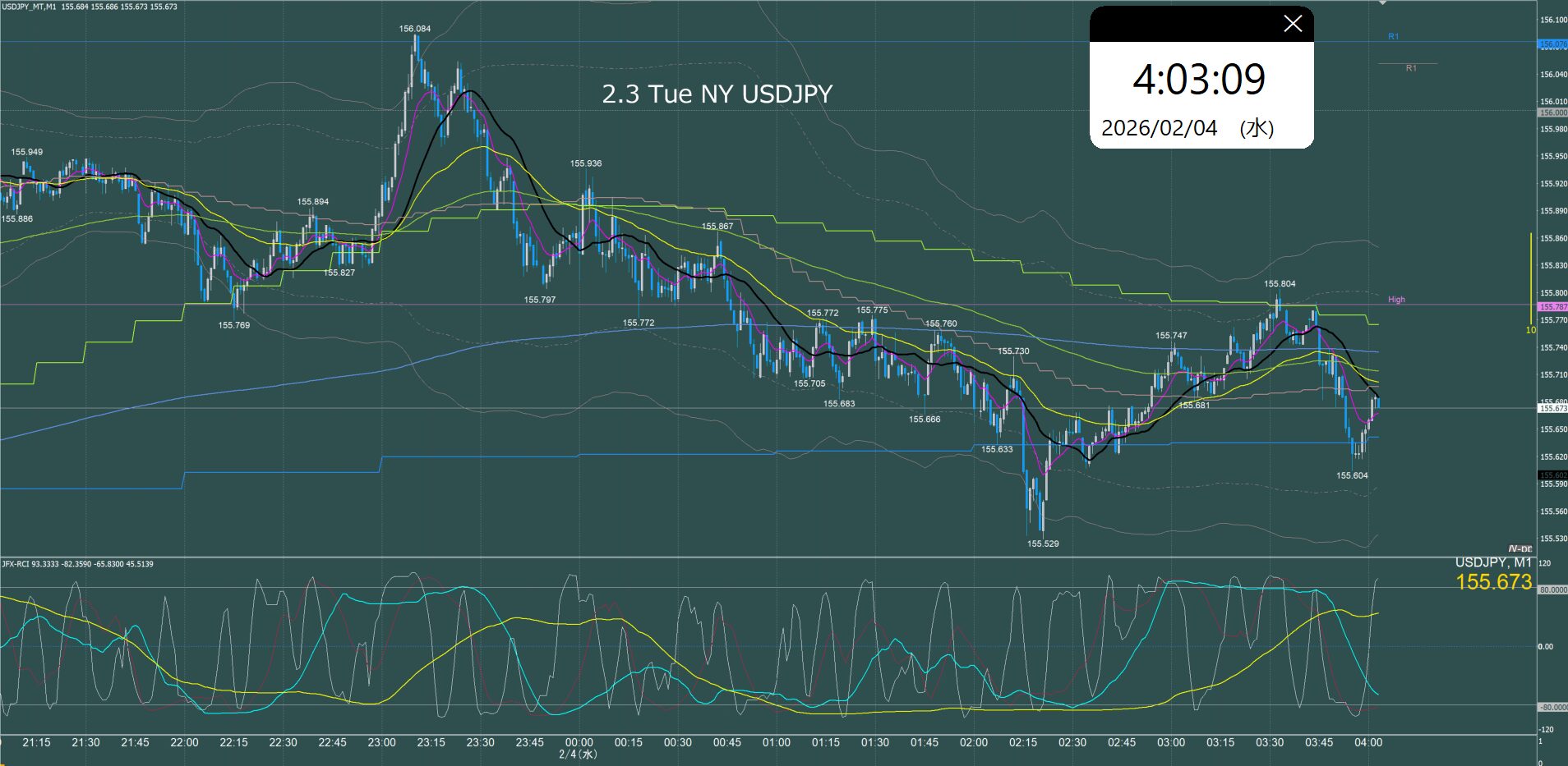 ニューヨーク前半 ドル円1分足チャート 水曜日 2月4日