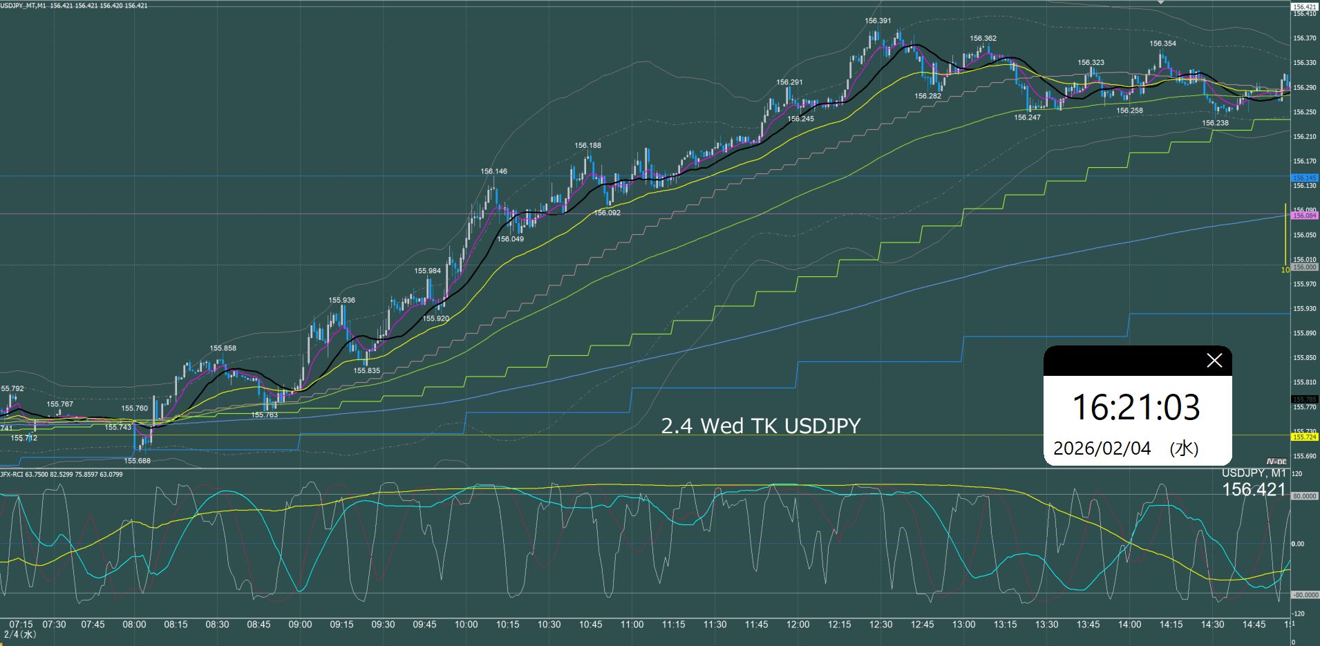 東京時間 ドル円1分足チャート 水曜日 2月4日