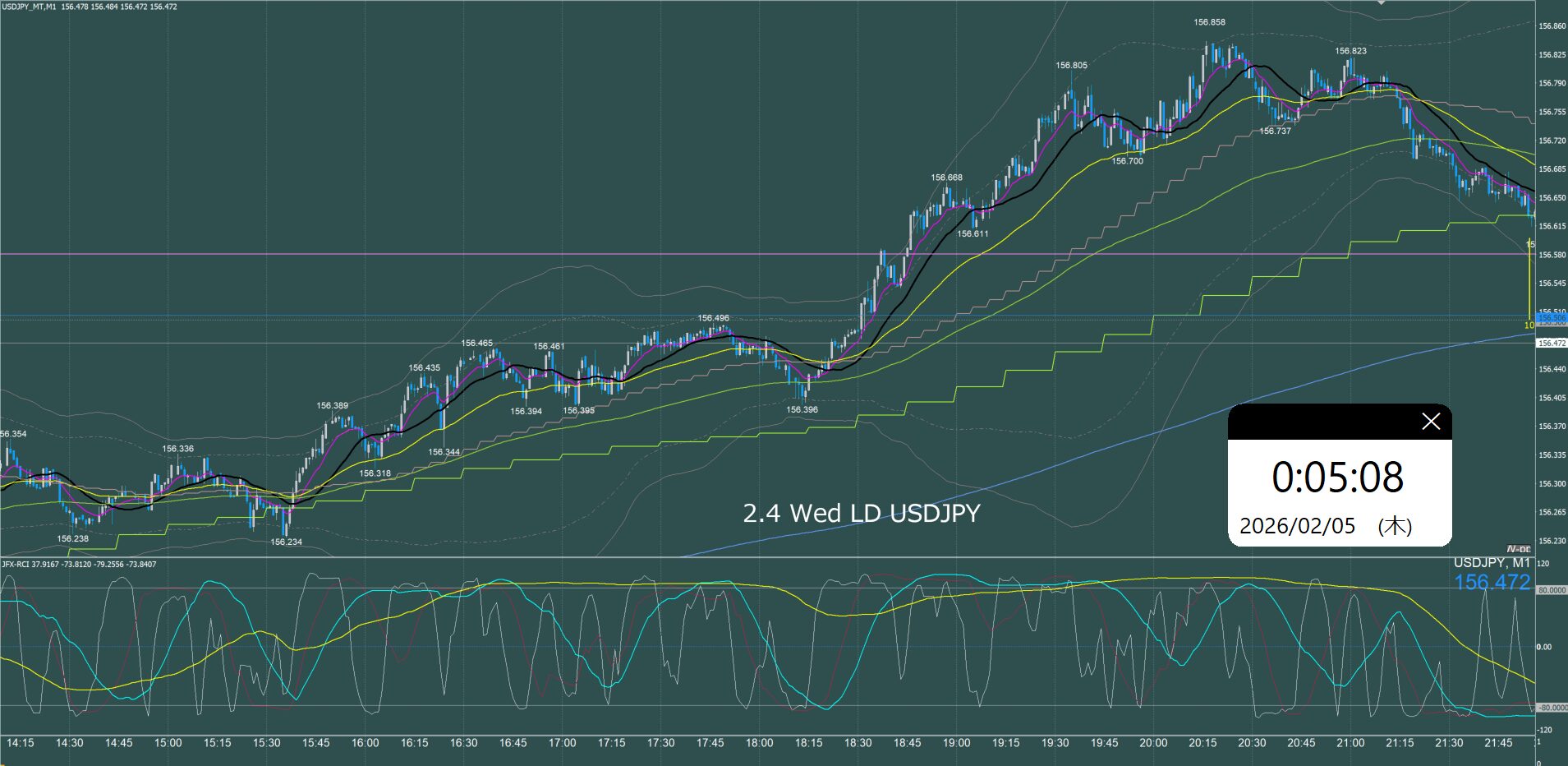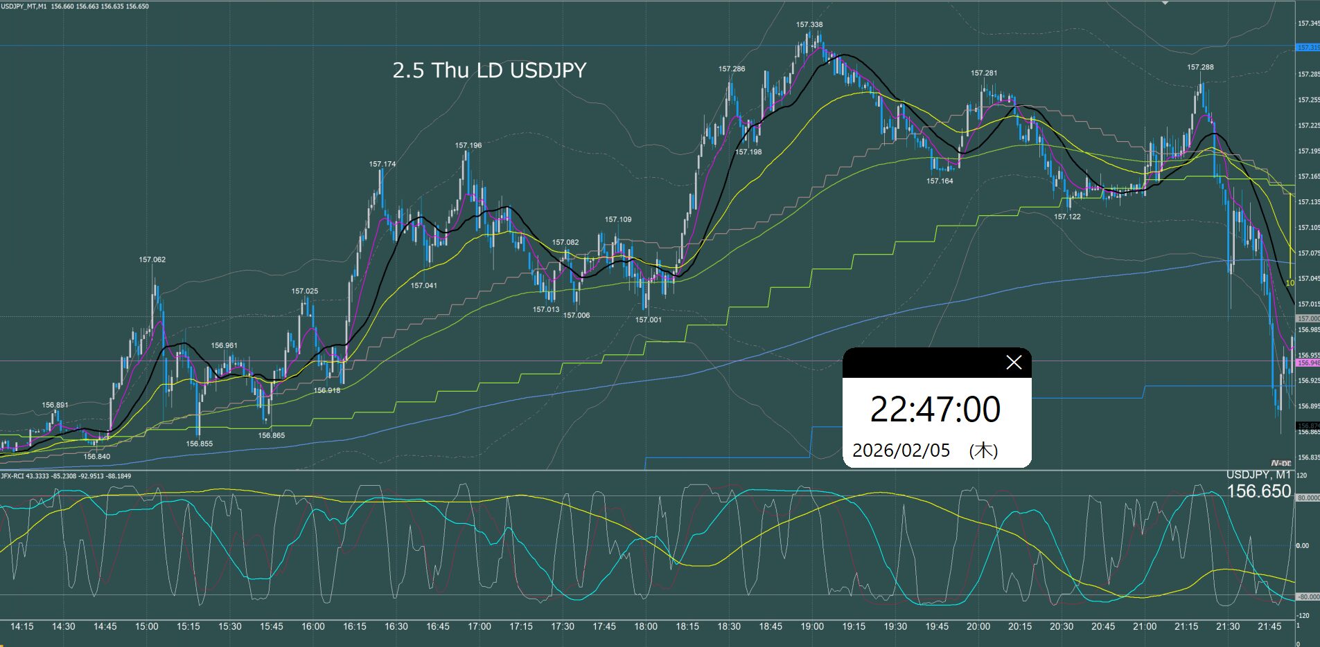 ロンドン時間 ドル円1分足チャート 木曜日 2月5日