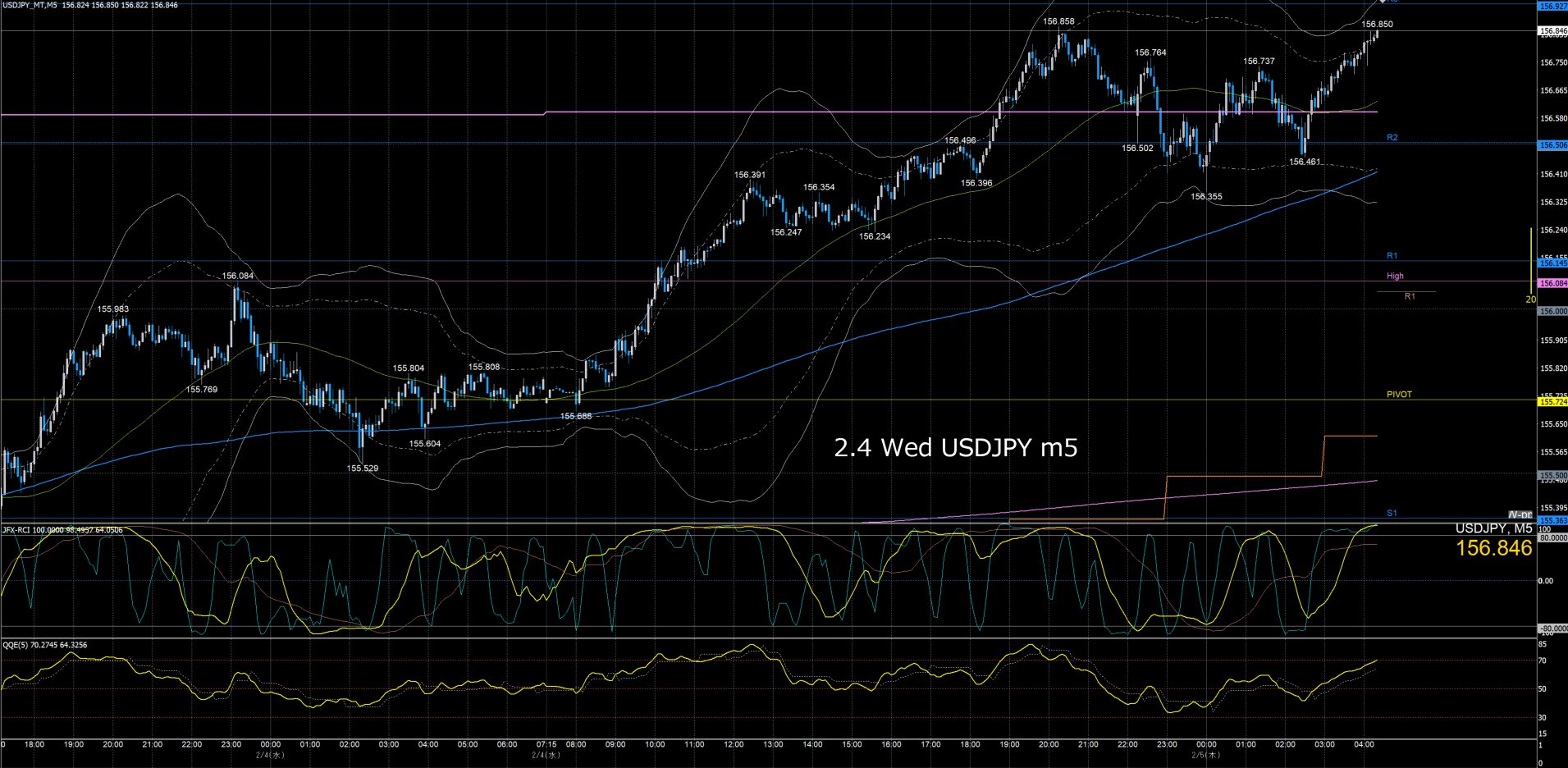 ドル円5分足チャート 水曜日 2月4日