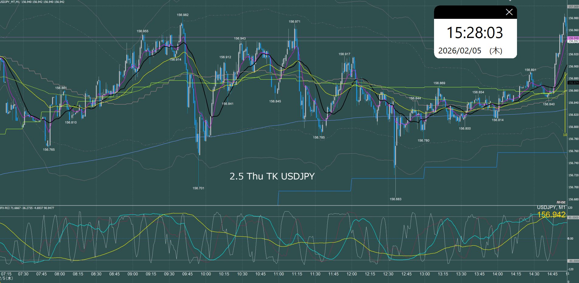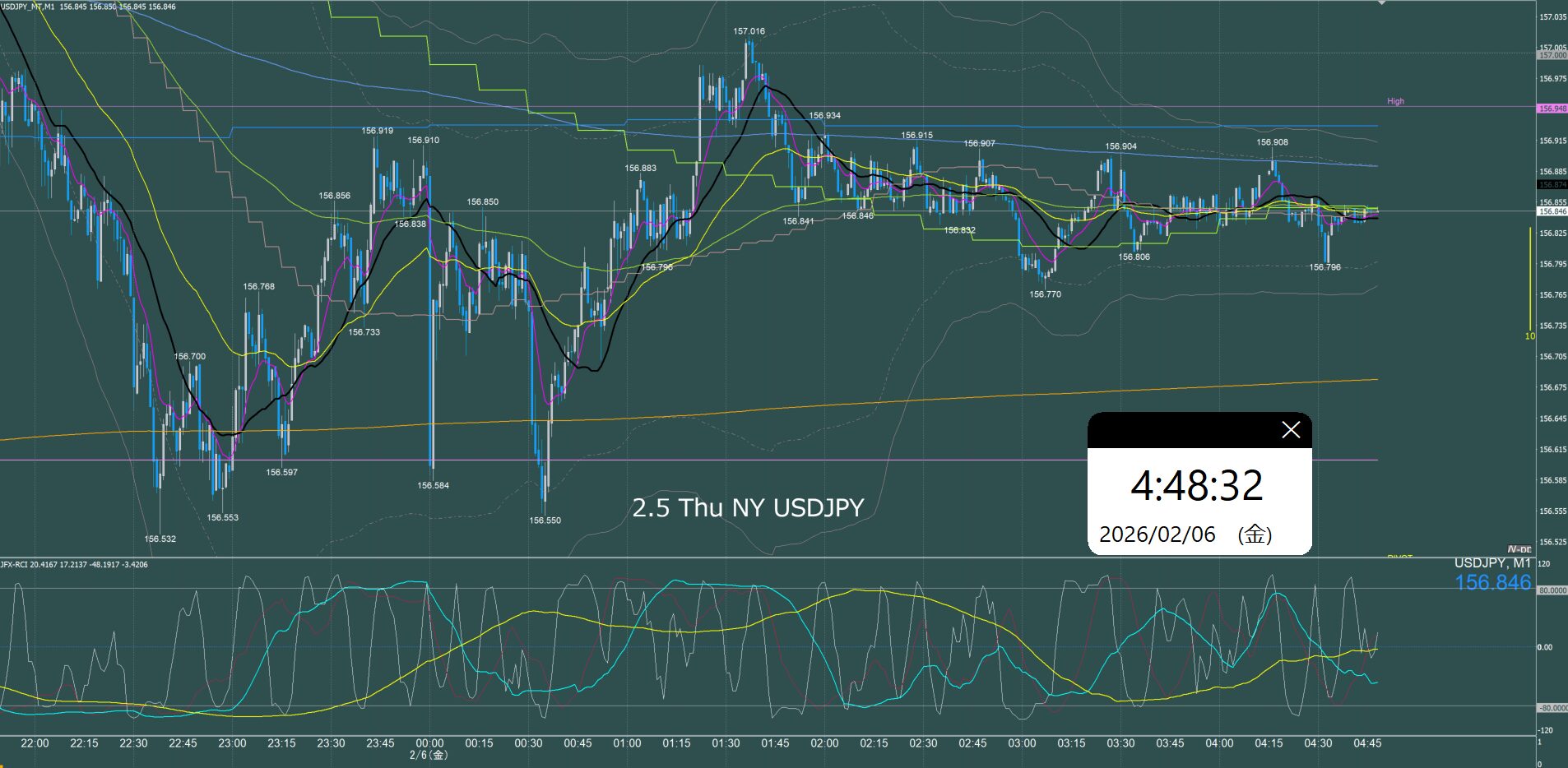東京時間 ドル円1分足チャート 木曜日 2月5日