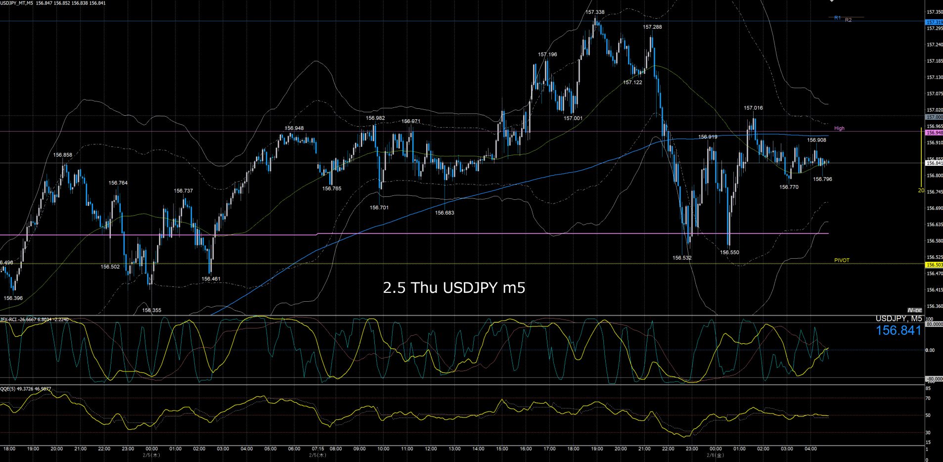 ドル円5分足チャート 木曜日 2月5日