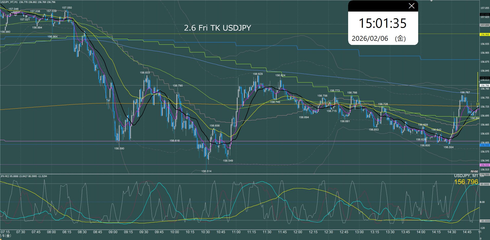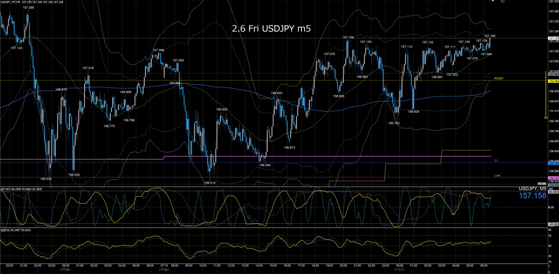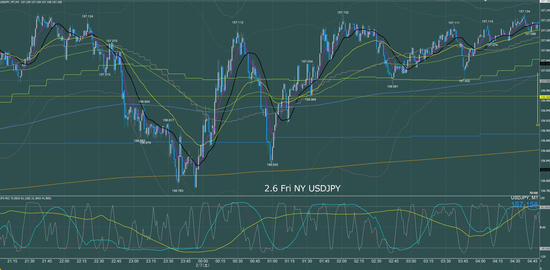 東京時間 ドル円1分足チャート 金曜日 2月6日
