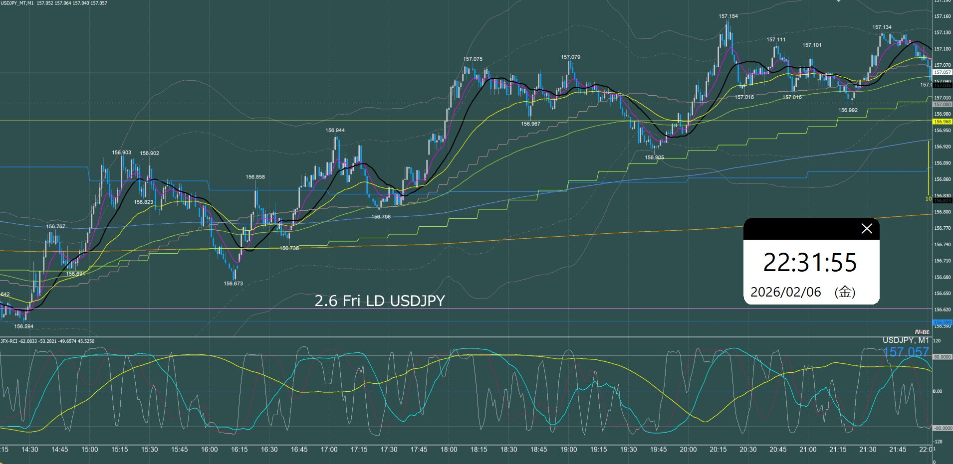 ロンドン時間 ドル円1分足チャート 金曜日 2月6日