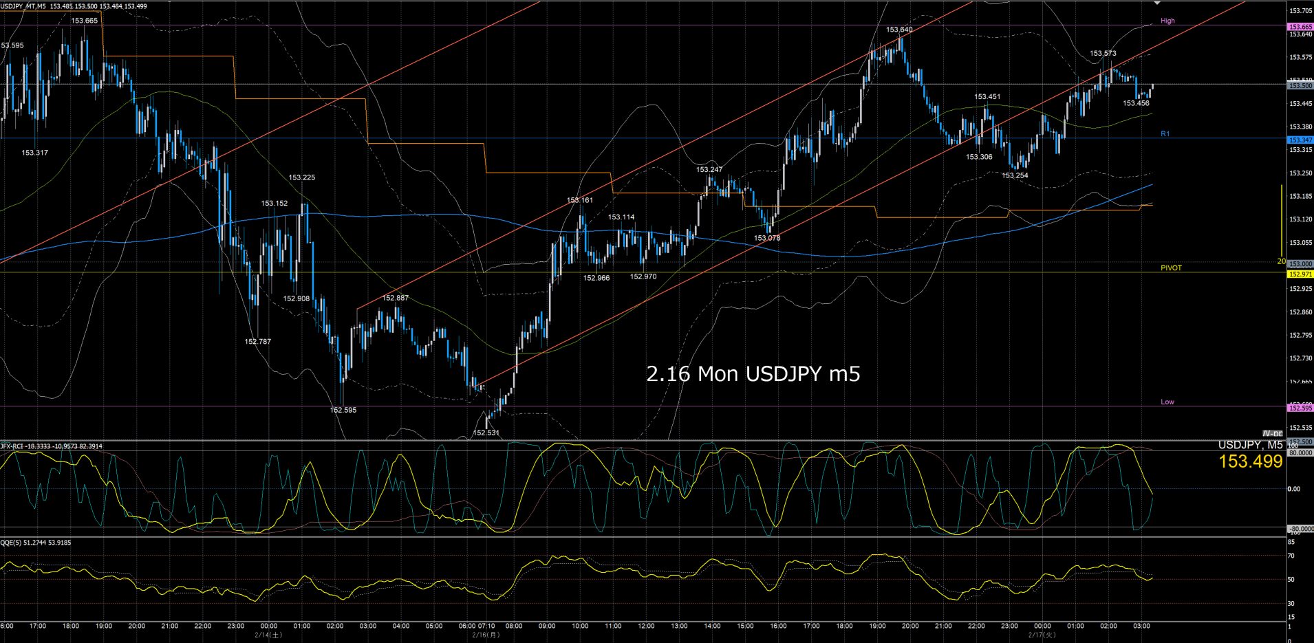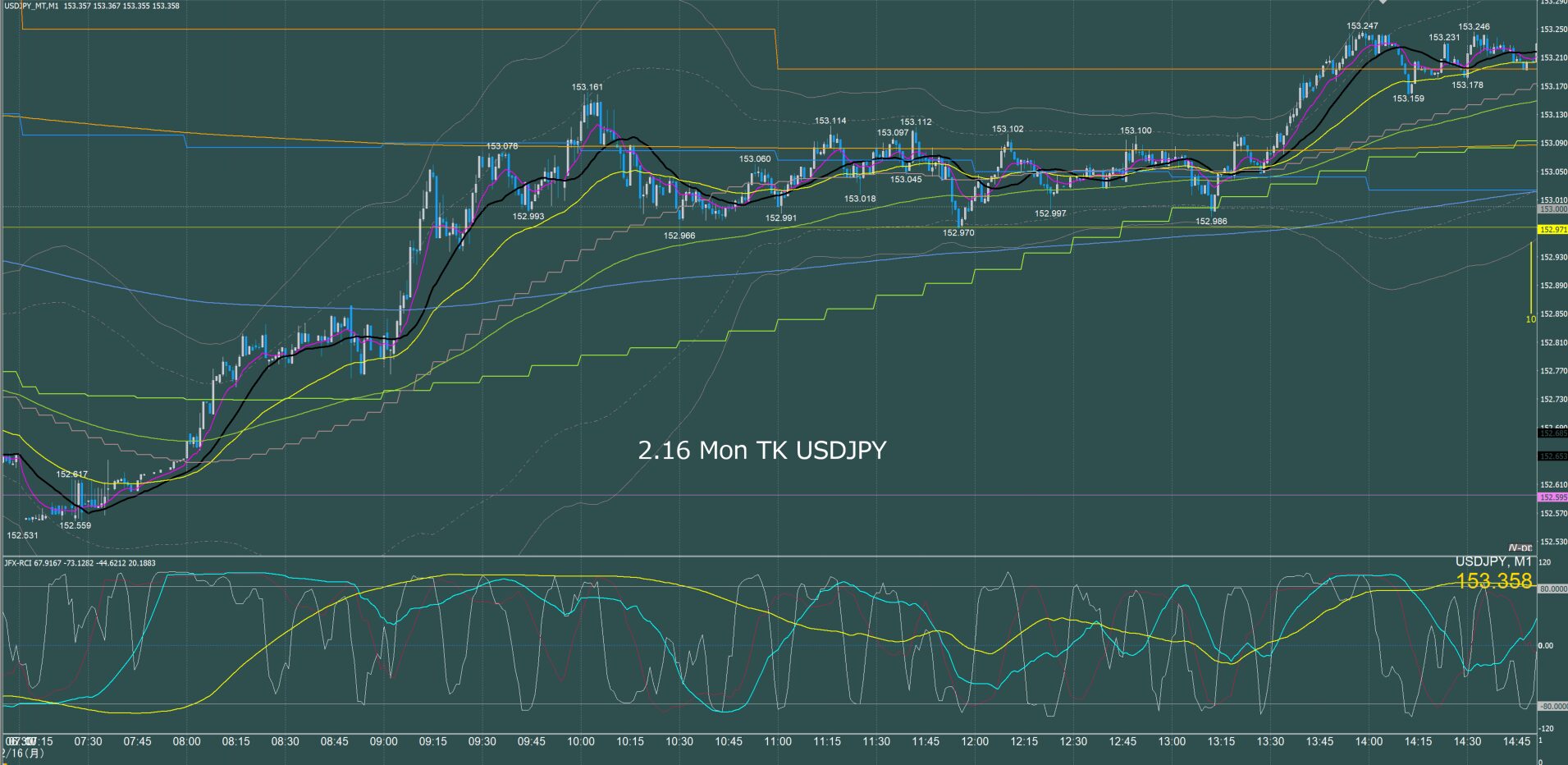 東京時間 ドル円1分足チャート 月曜日 2月16日