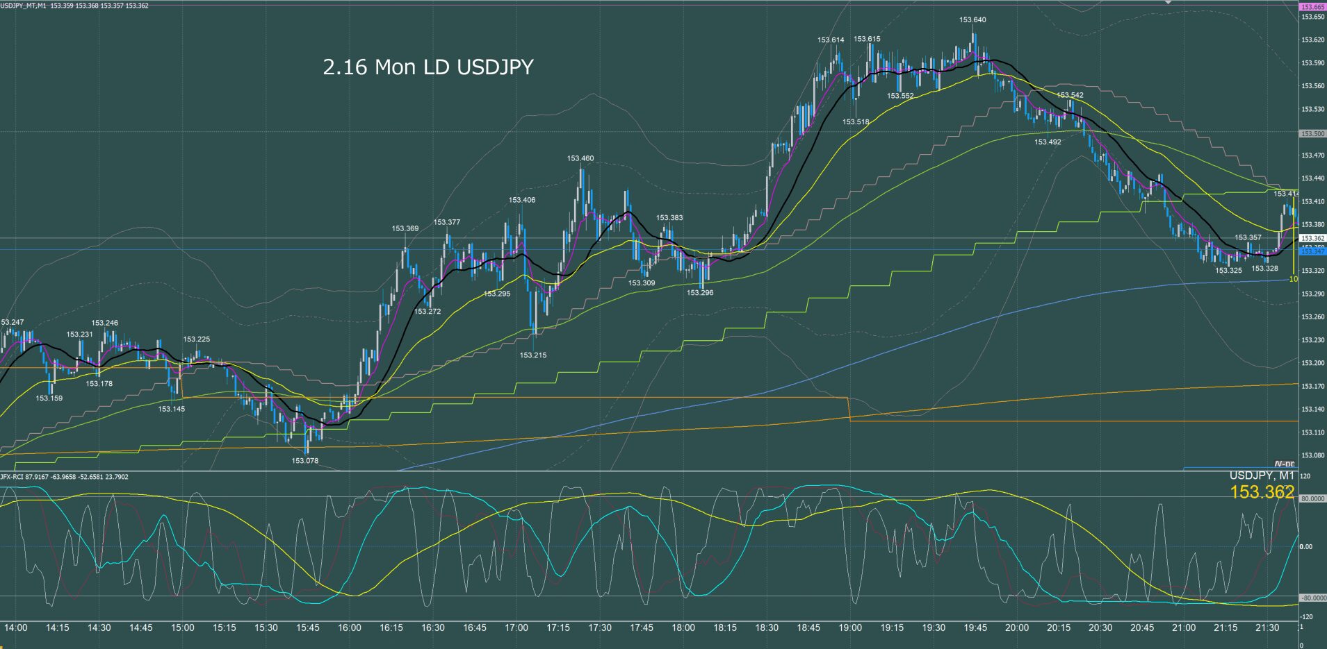 ロンドン時間 ドル円1分足チャート 月曜日 2月16日