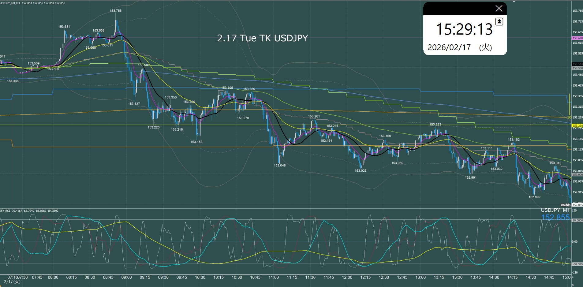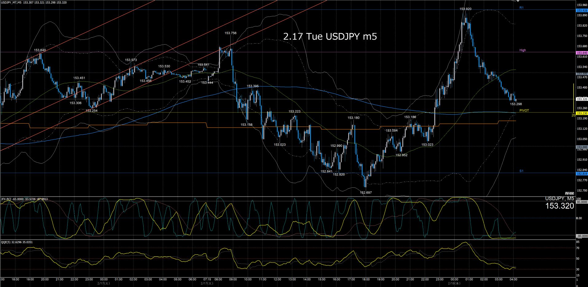 東京時間 ドル円1分足チャート 火曜日 2月17日