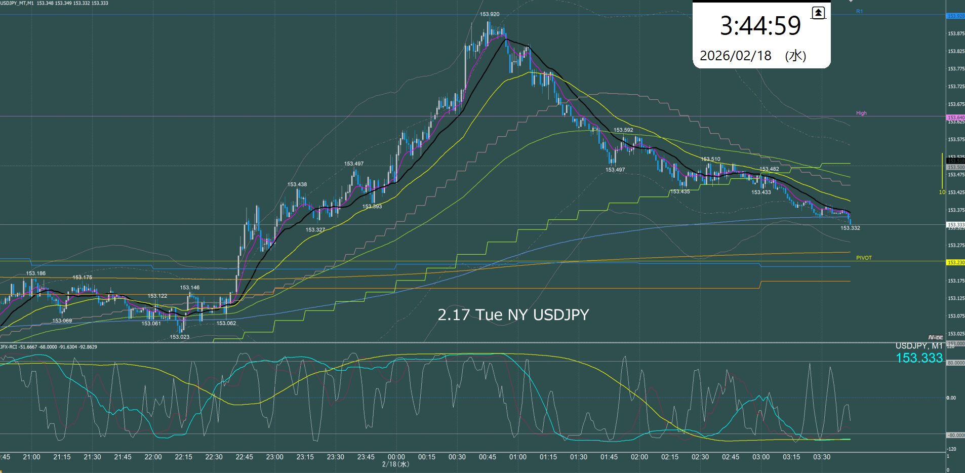 ニューヨーク前半 ドル円1分足チャート 火曜日 2月17日