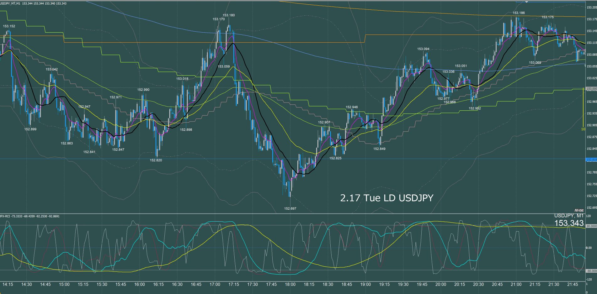 ロンドン時間 ドル円1分足チャート 火曜日 2月17日