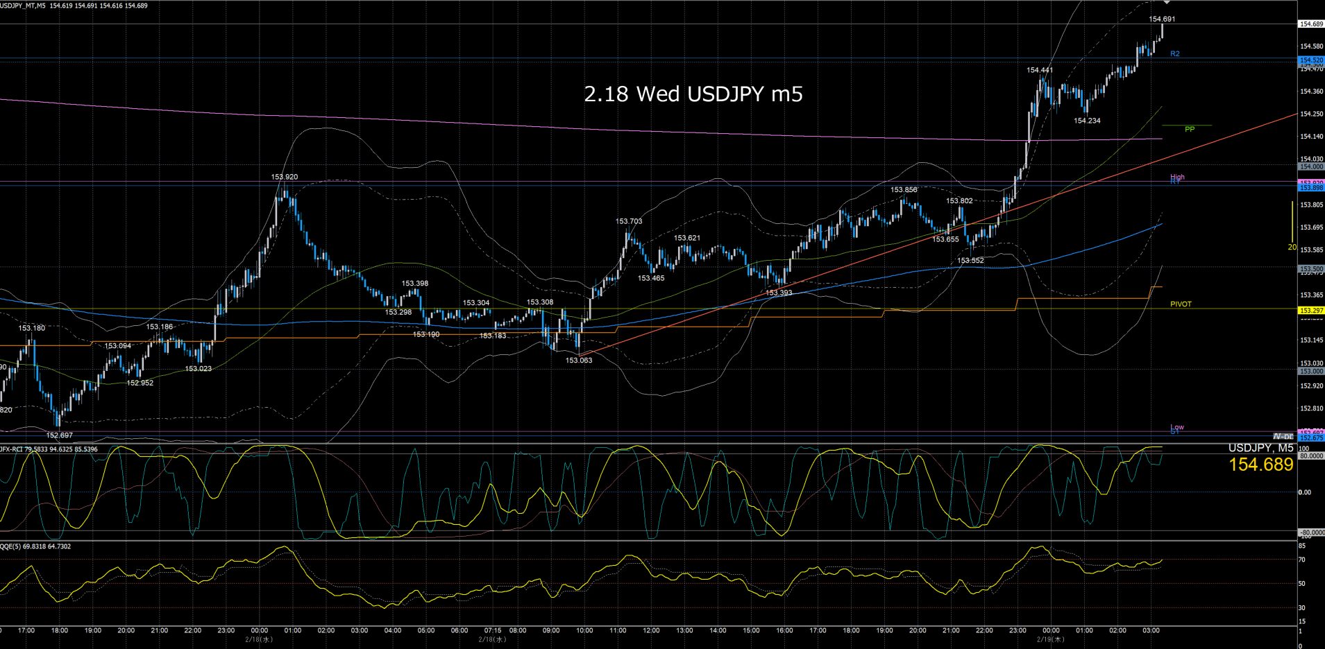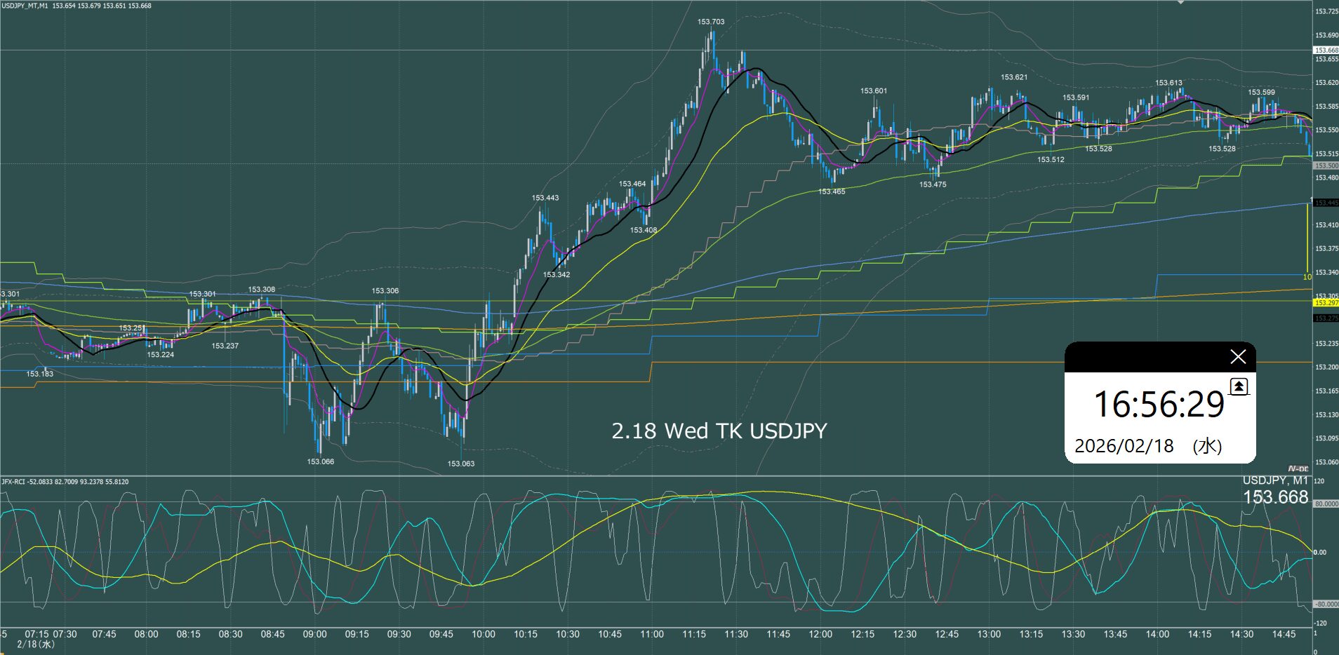 東京時間 ドル円1分足チャート 水曜日 2月18日
