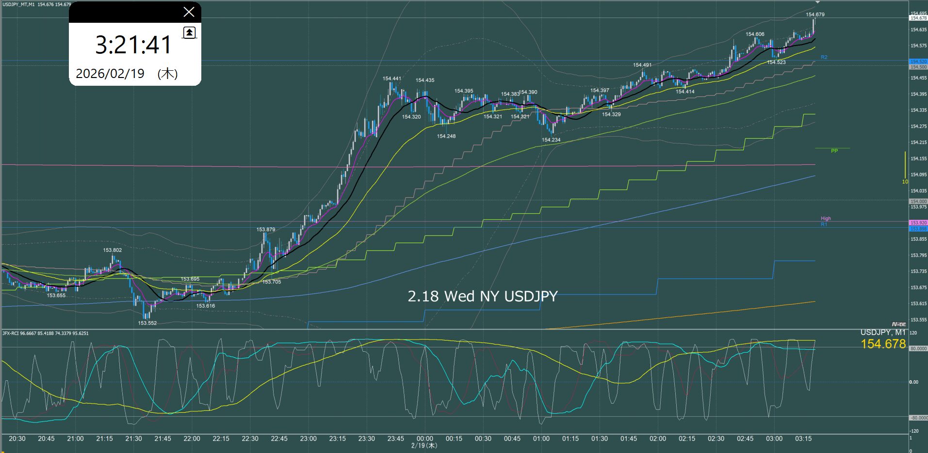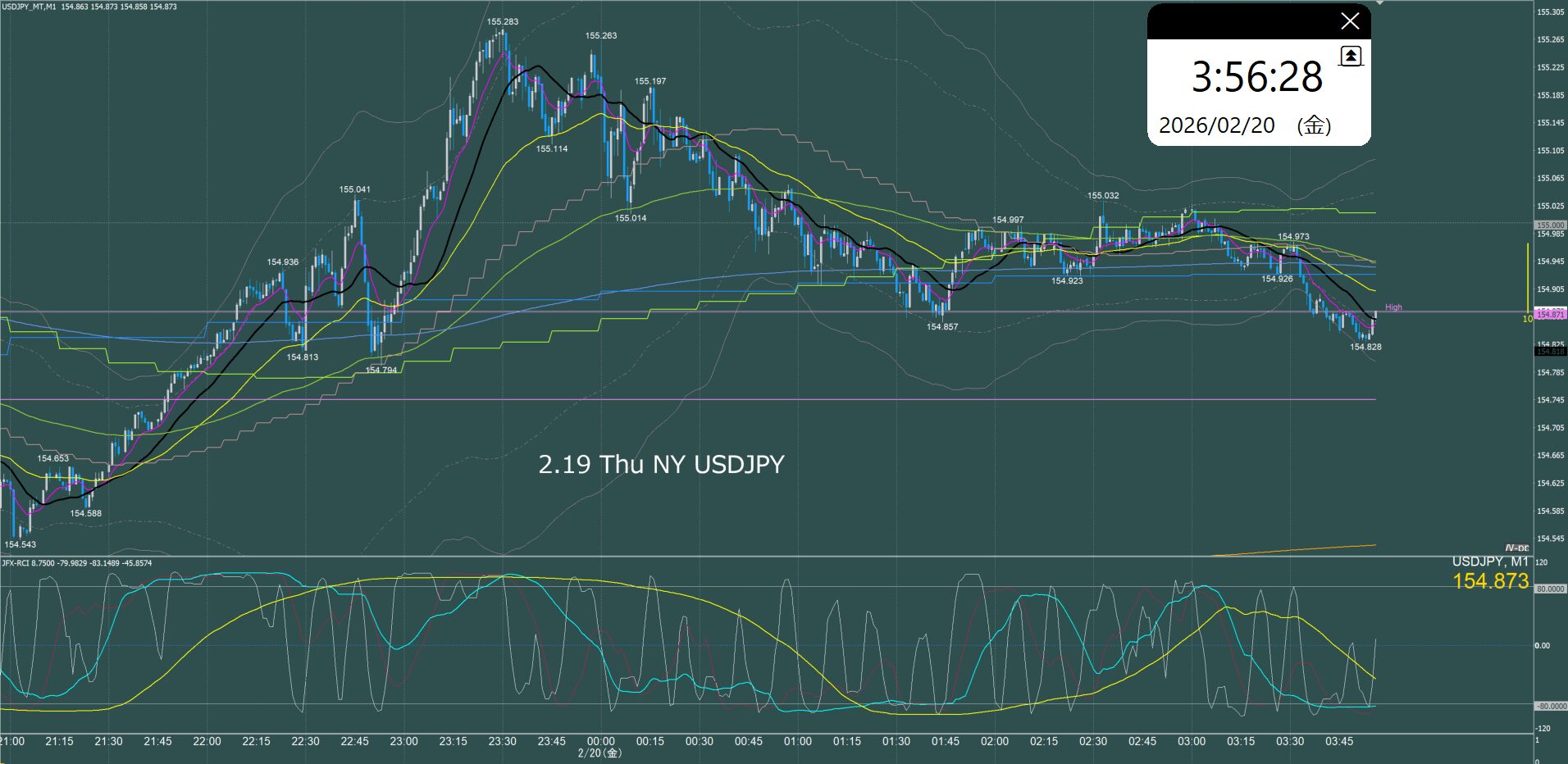 ニューヨーク前半 ドル円1分足チャート 木曜日 2月19日