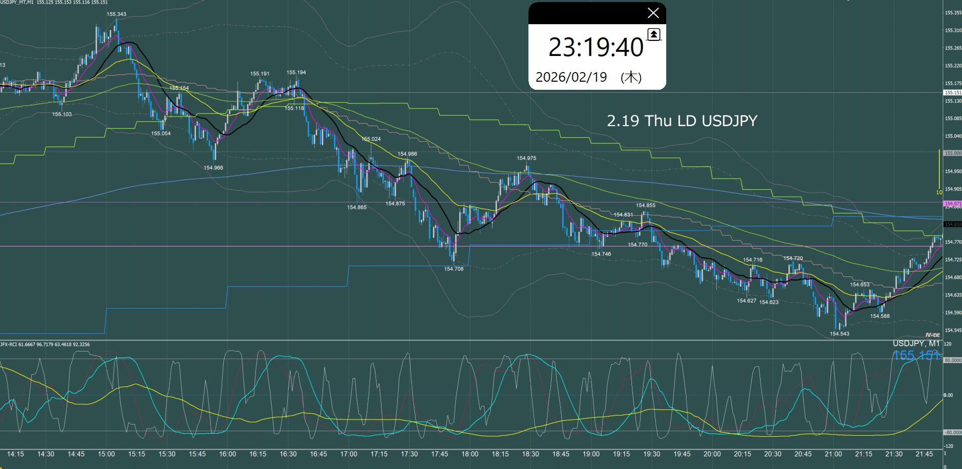 ロンドン時間 ドル円1分足チャート 木曜日 2月19日
