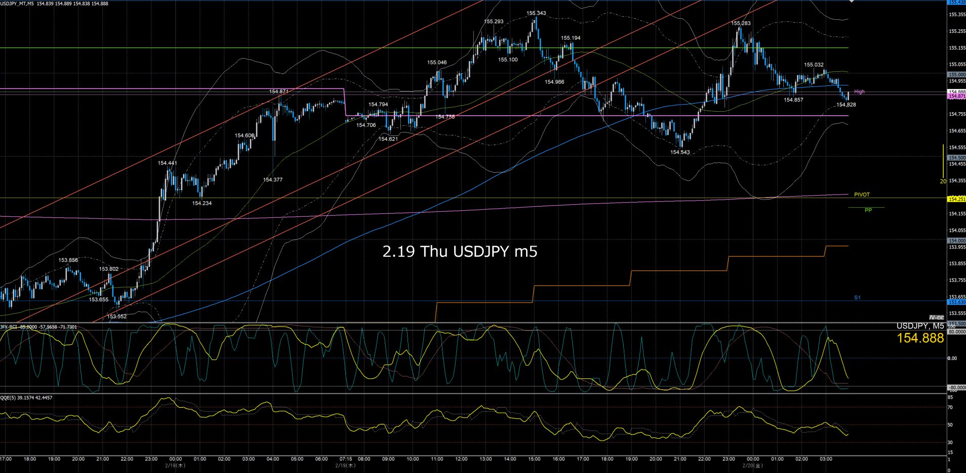 東京時間 ドル円1分足チャート 木曜日 2月19日