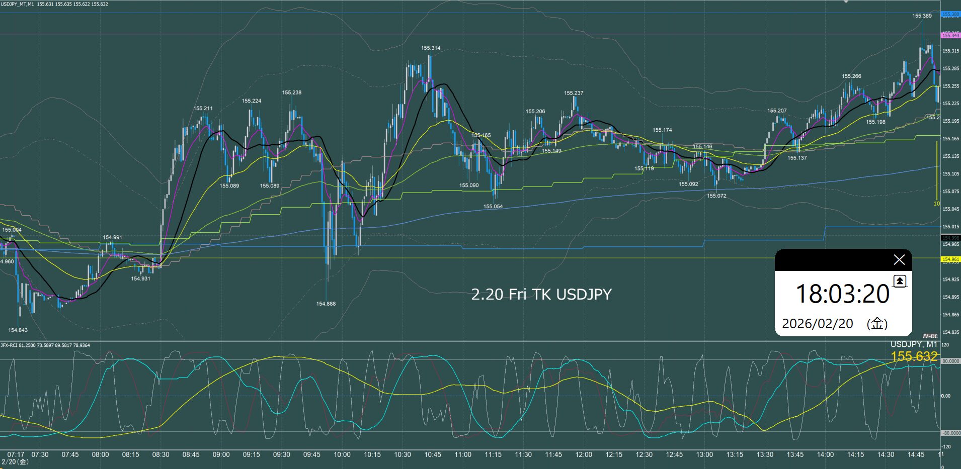 東京時間 ドル円1分足チャート 金曜日 2月20日