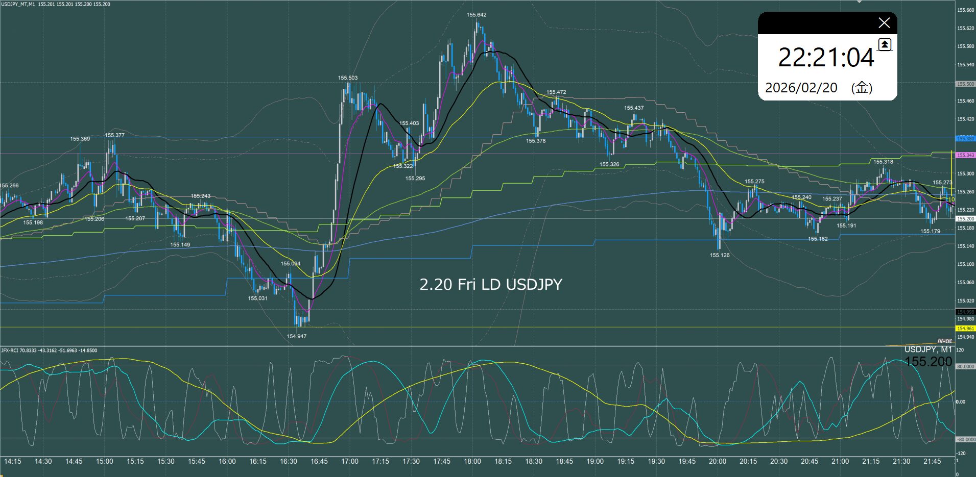 ロンドン時間 ドル円1分足チャート 金曜日 2月20日