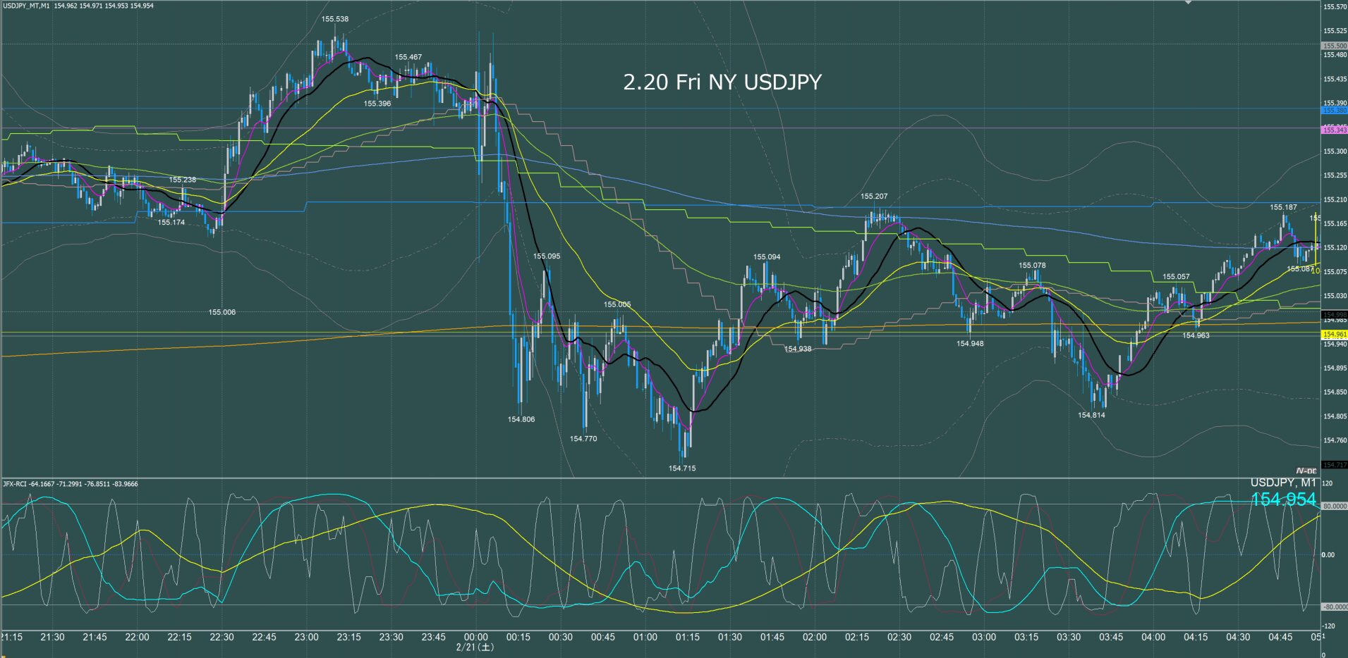 ニューヨーク前半 ドル円1分足チャート 金曜日 2月20日